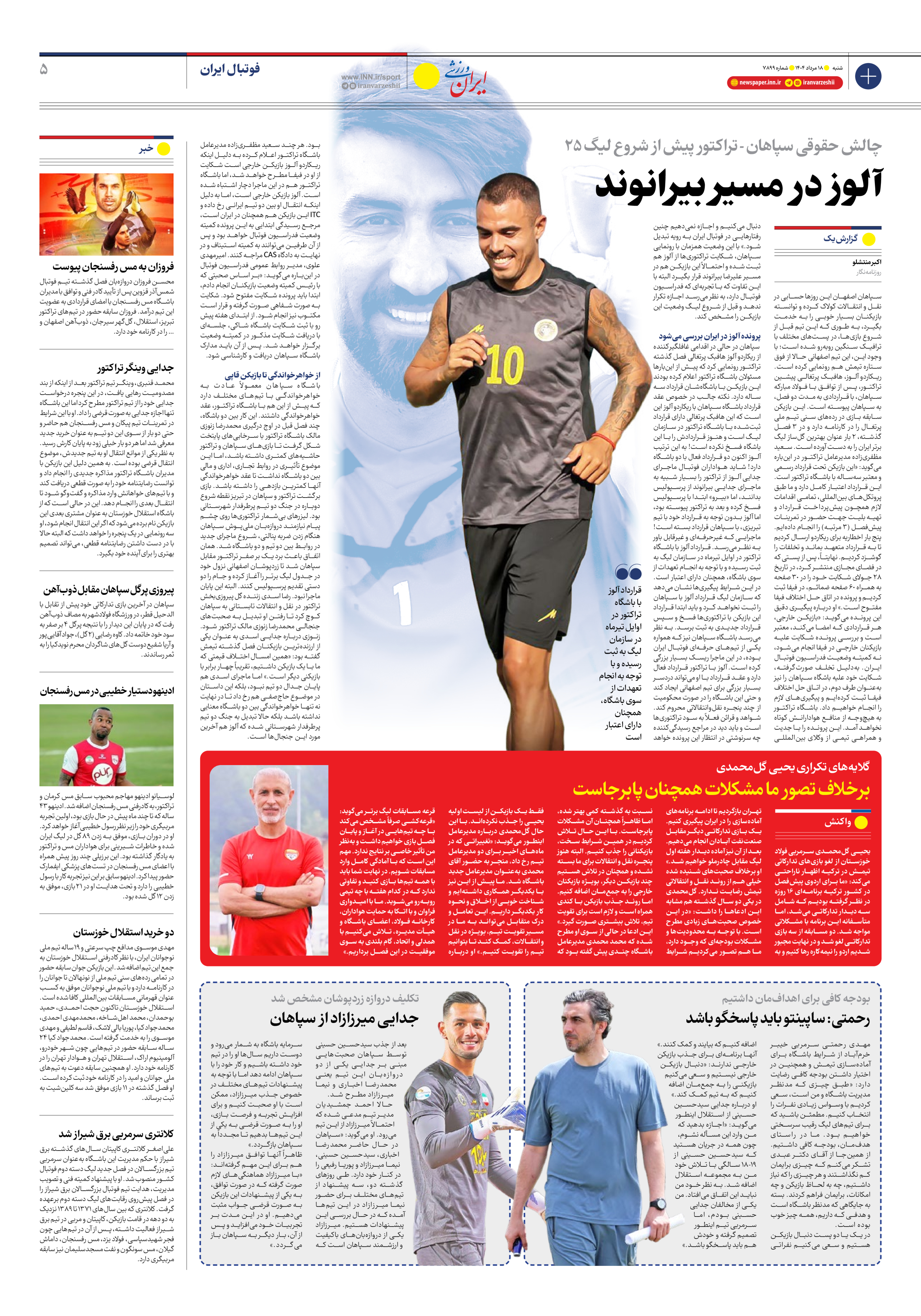 روزنامه ایران ورزشی - شماره هفت هزار و هشتصد و نود و نه - ۱۸ مرداد ۱۴۰۴ - صفحه ۵