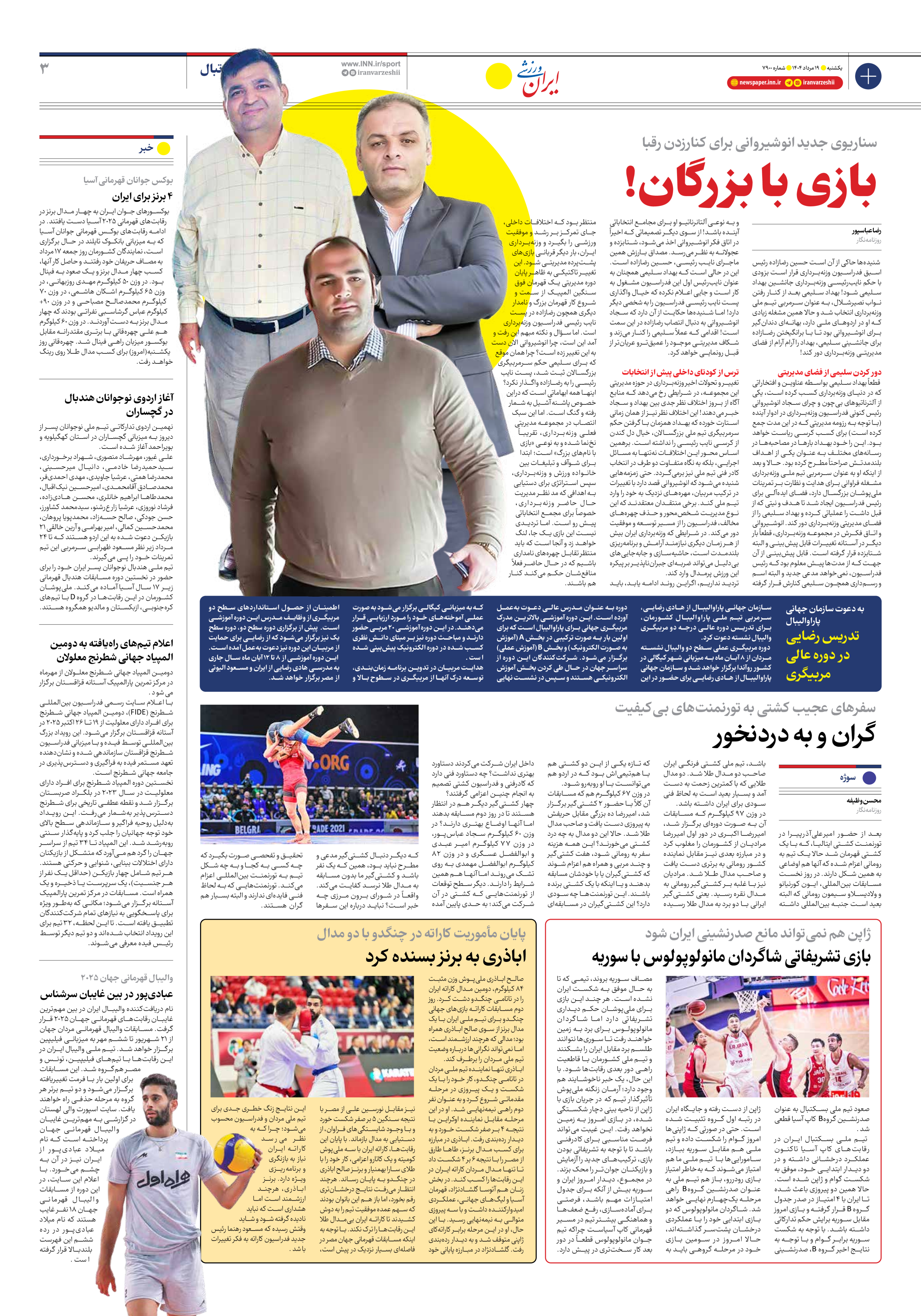 روزنامه ایران ورزشی - شماره هفت هزار و نهصد - ۱۹ مرداد ۱۴۰۴ - صفحه ۳