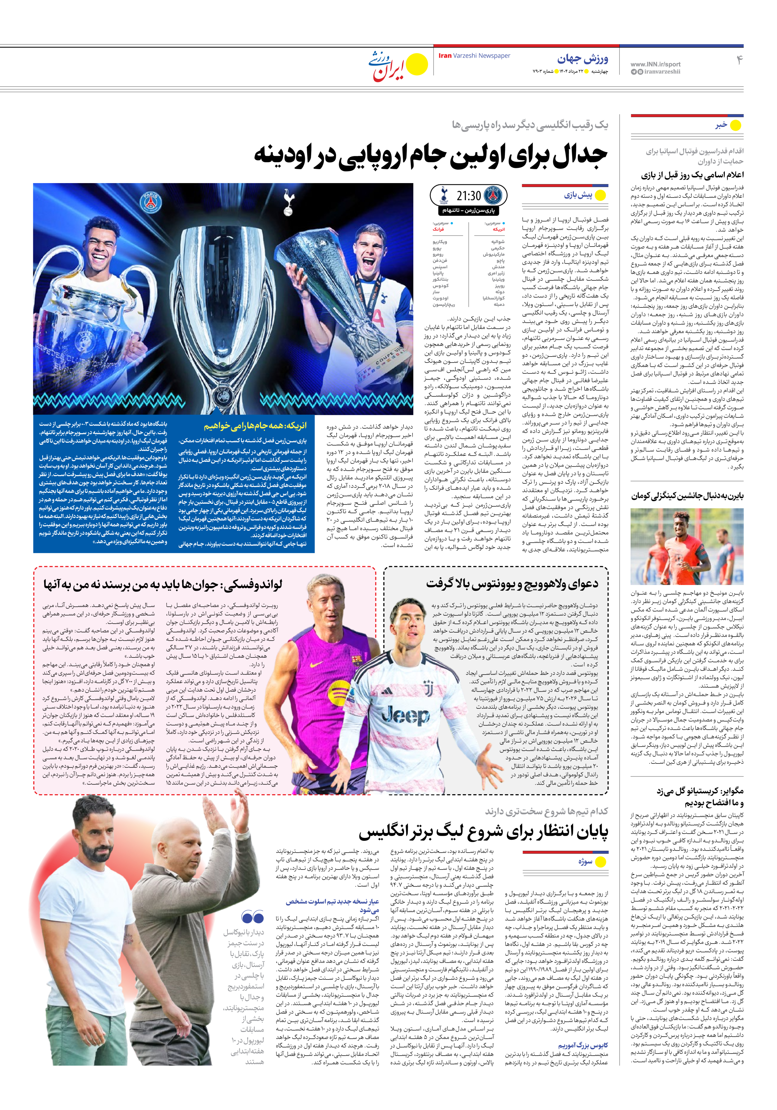 روزنامه ایران ورزشی - شماره هفت هزار و نهصد و سه - ۲۲ مرداد ۱۴۰۴ - صفحه ۴