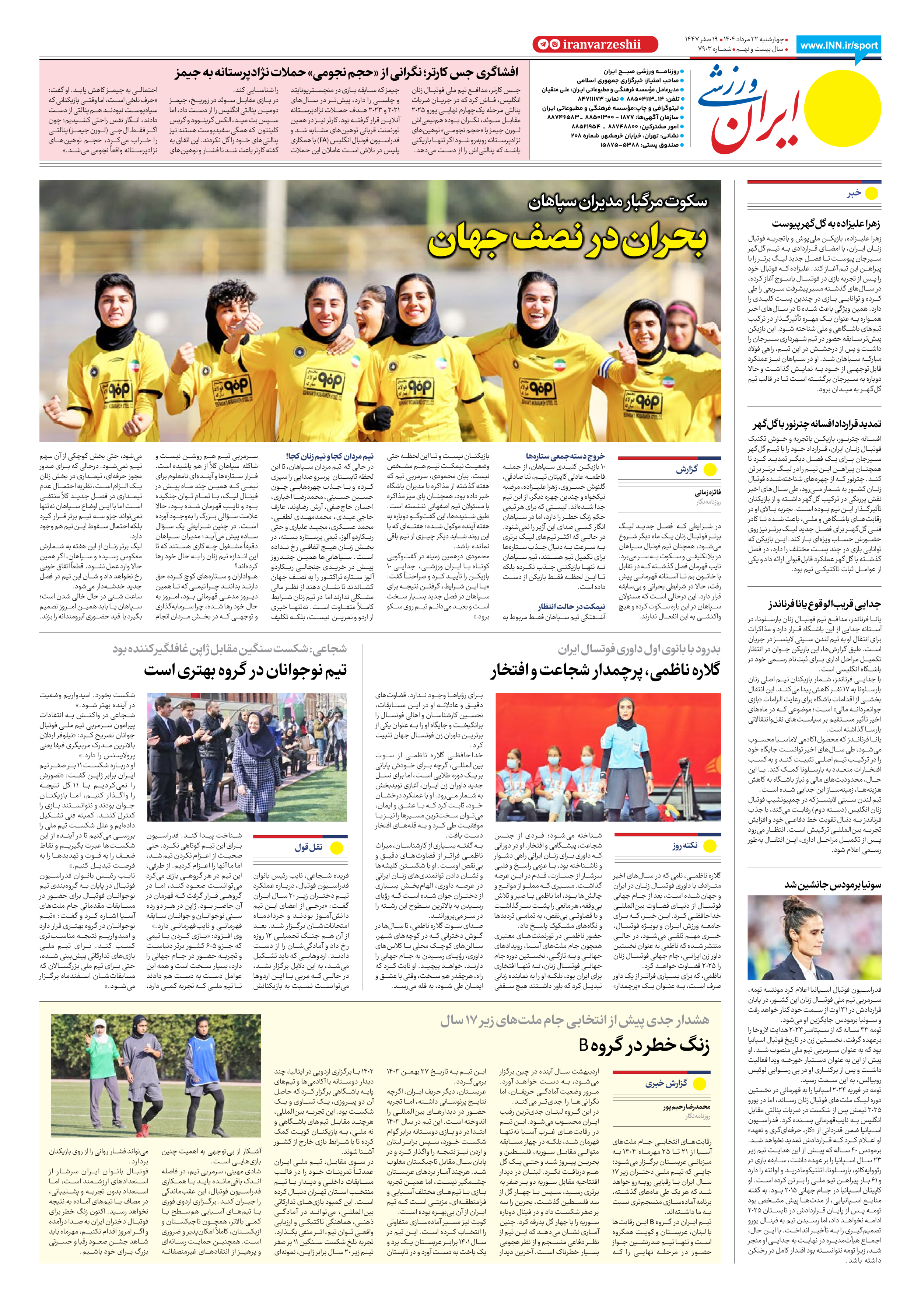 شماره هفت هزار و نهصد و سه - ۲۲ مرداد ۱۴۰۴
