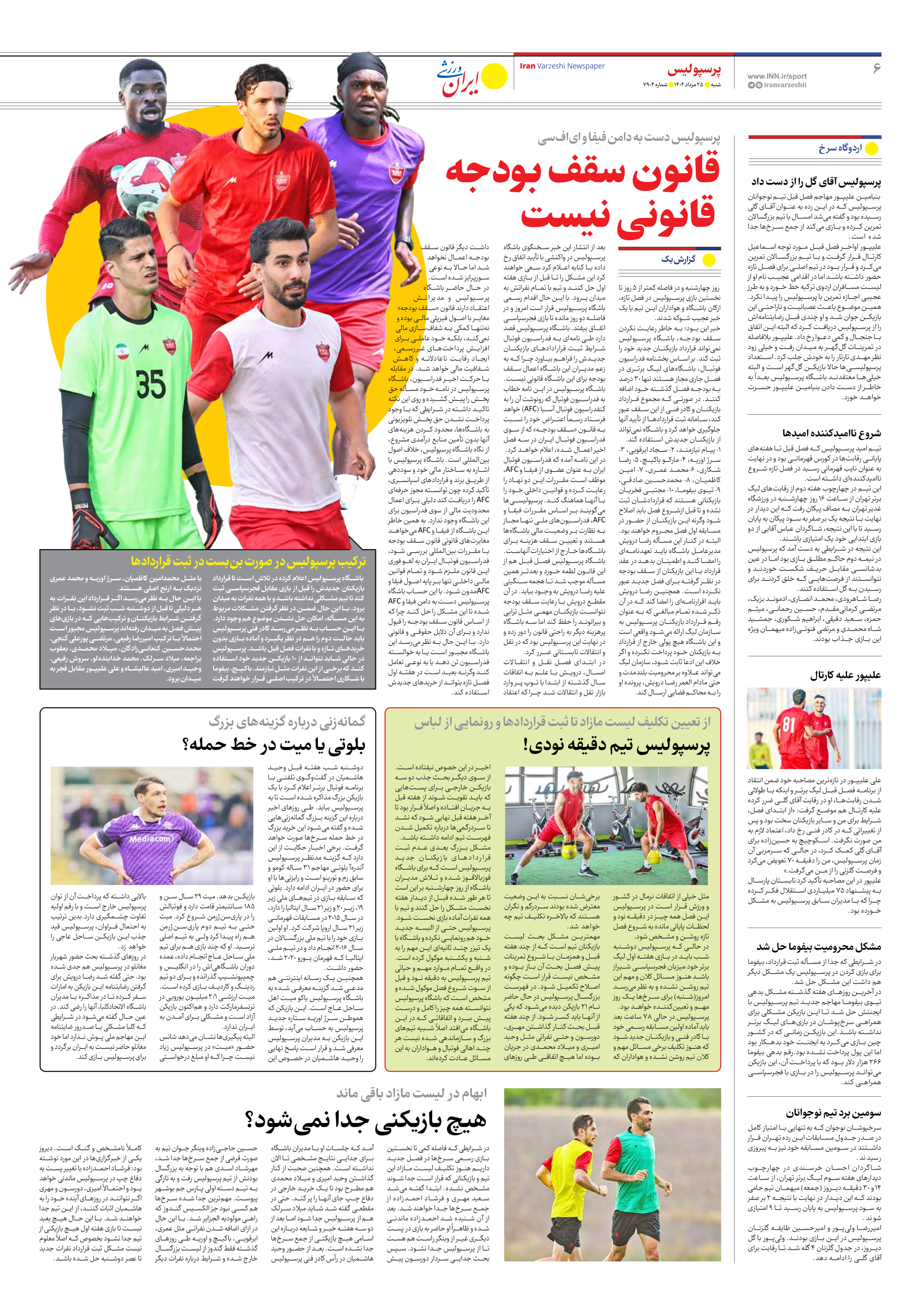 روزنامه ایران ورزشی - شماره هفت هزار و نهصد و چهار - ۲۵ مرداد ۱۴۰۴ - صفحه ۶