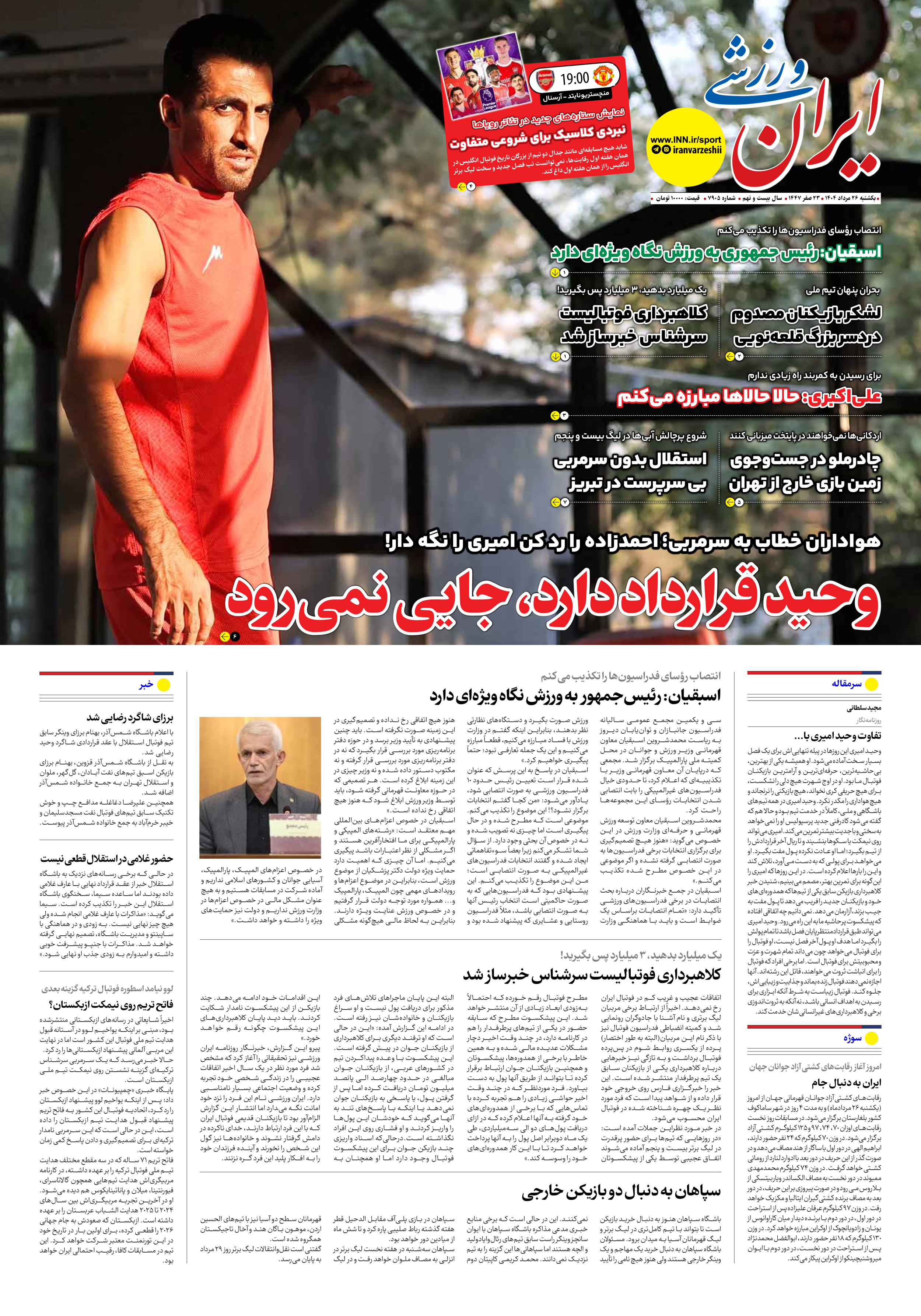 روزنامه ایران ورزشی - شماره هفت هزار و نهصد و پنج - ۲۶ مرداد ۱۴۰۴