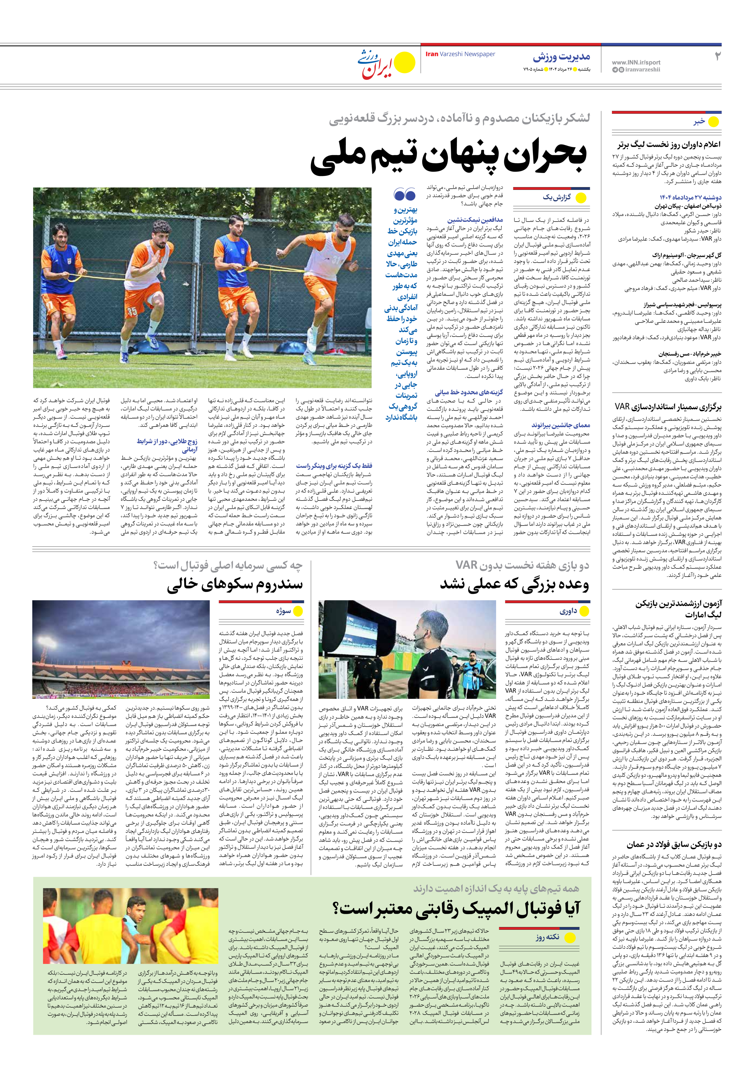 روزنامه ایران ورزشی - شماره هفت هزار و نهصد و پنج - ۲۶ مرداد ۱۴۰۴ - صفحه ۲