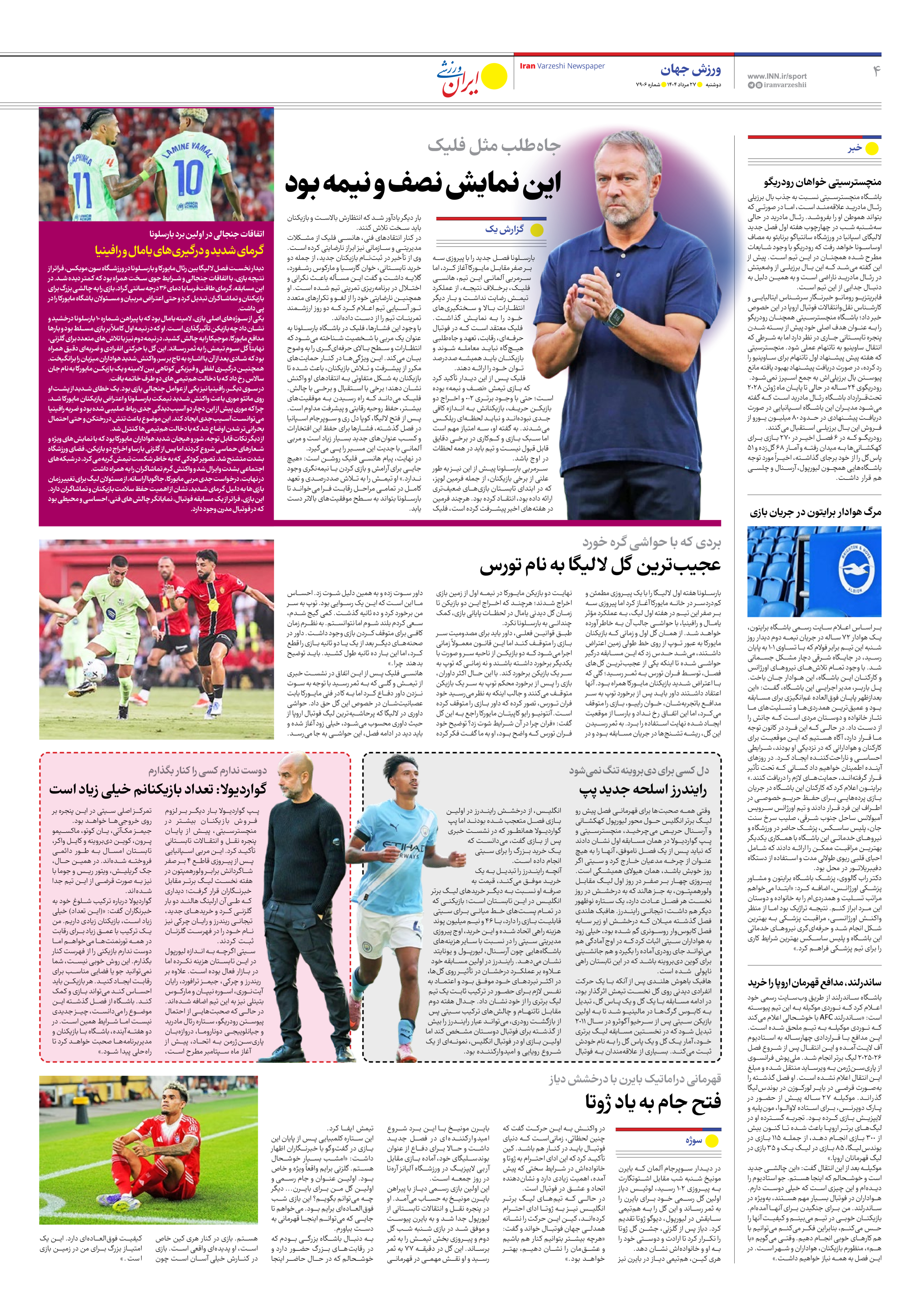 روزنامه ایران ورزشی - شماره هفت هزار و نهصد و شش - ۲۷ مرداد ۱۴۰۴ - صفحه ۴
