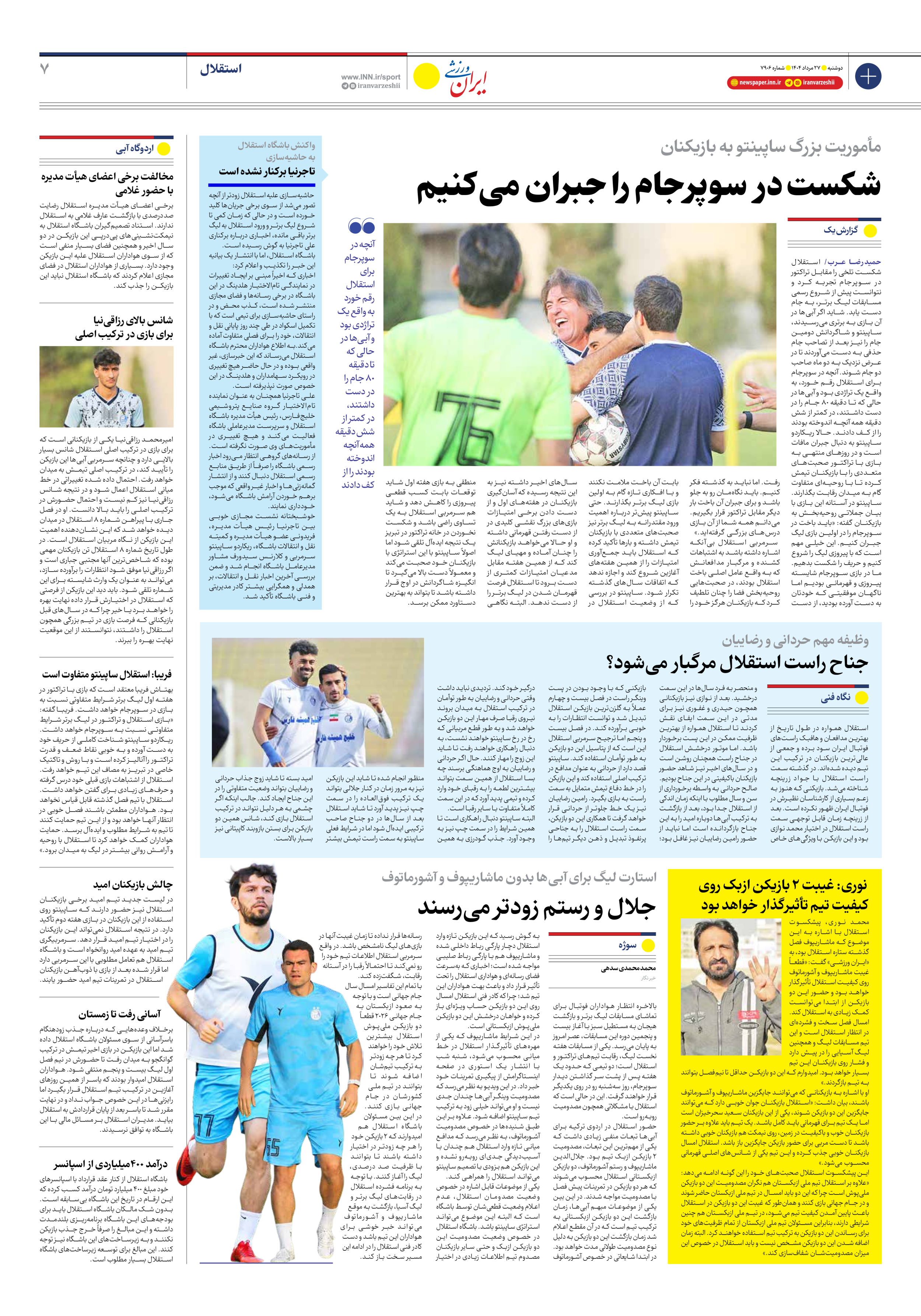 روزنامه ایران ورزشی - شماره هفت هزار و نهصد و شش - ۲۷ مرداد ۱۴۰۴ - صفحه ۷