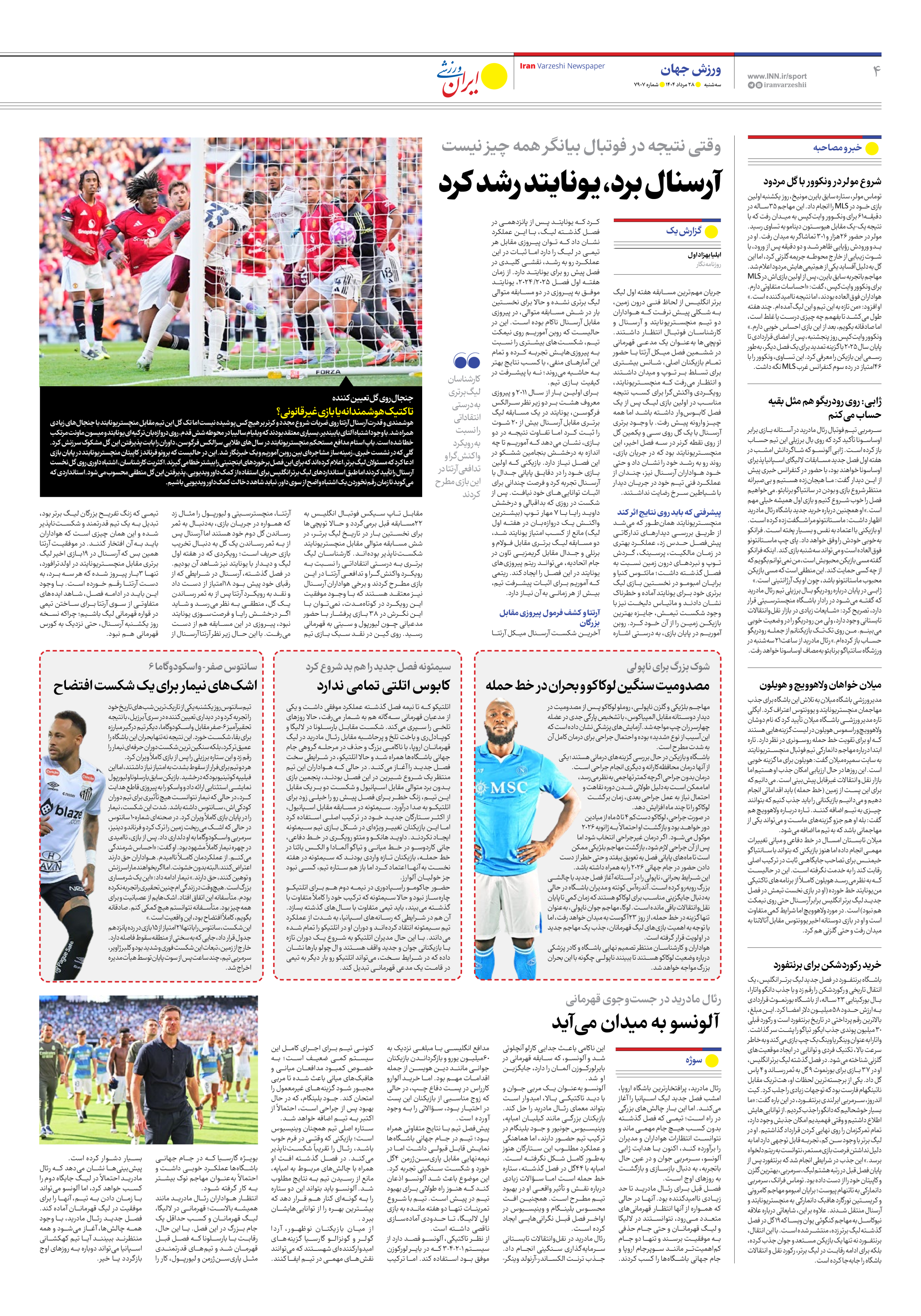 روزنامه ایران ورزشی - شماره هفت هزار و نهصد و هفت - ۲۸ مرداد ۱۴۰۴ - صفحه ۴