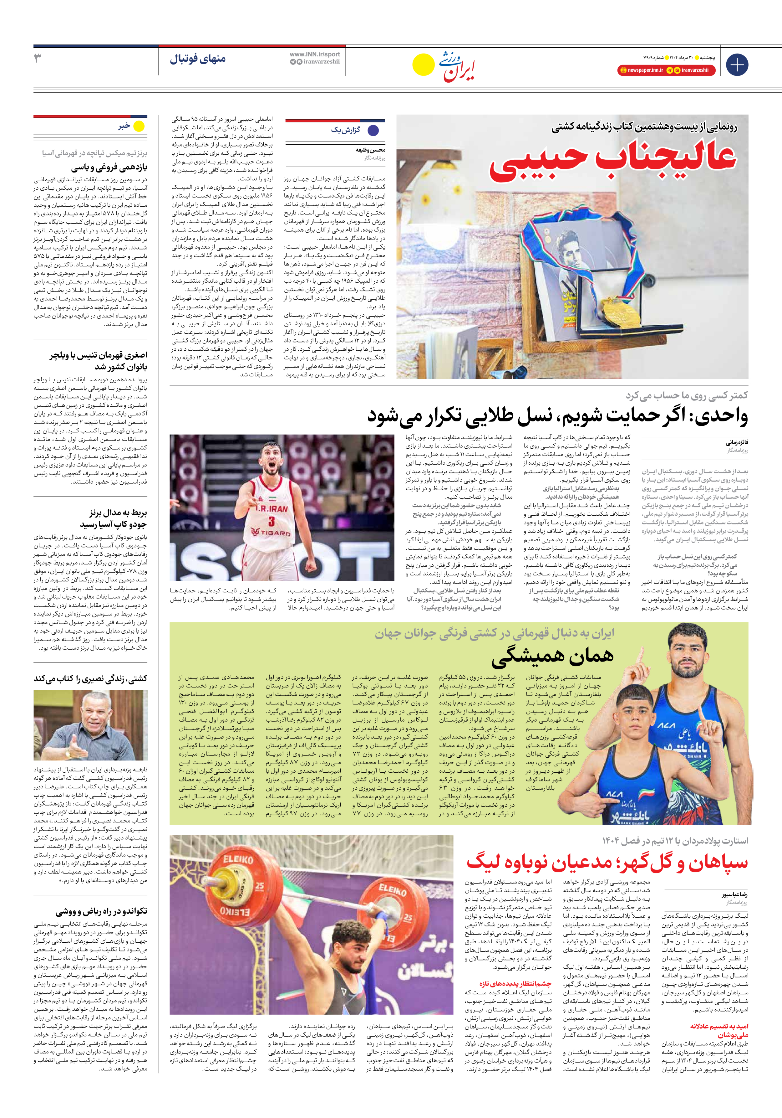 روزنامه ایران ورزشی - شماره هفت هزار و نهصد و نه - ۳۰ مرداد ۱۴۰۴ - صفحه ۳