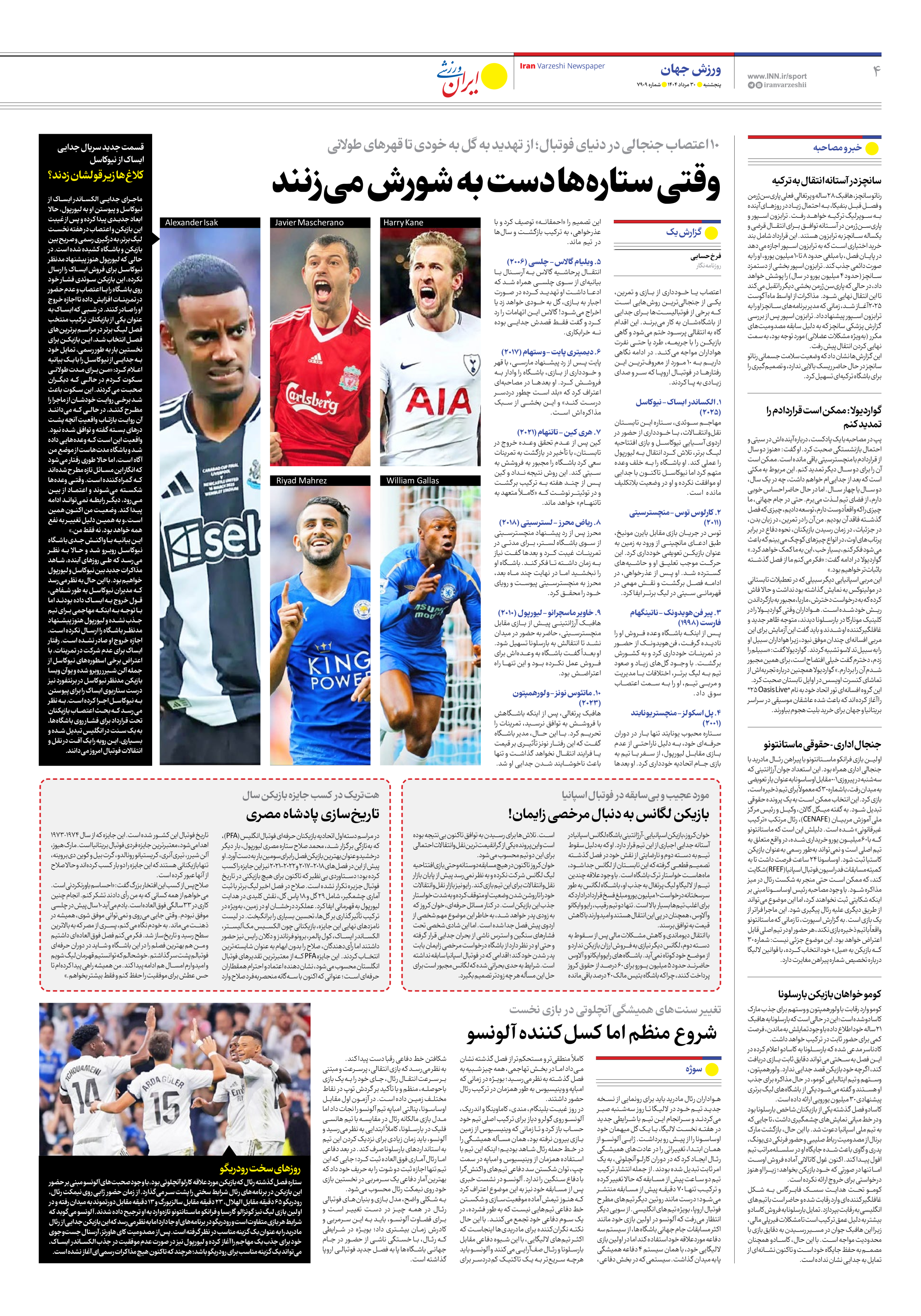 روزنامه ایران ورزشی - شماره هفت هزار و نهصد و نه - ۳۰ مرداد ۱۴۰۴ - صفحه ۴