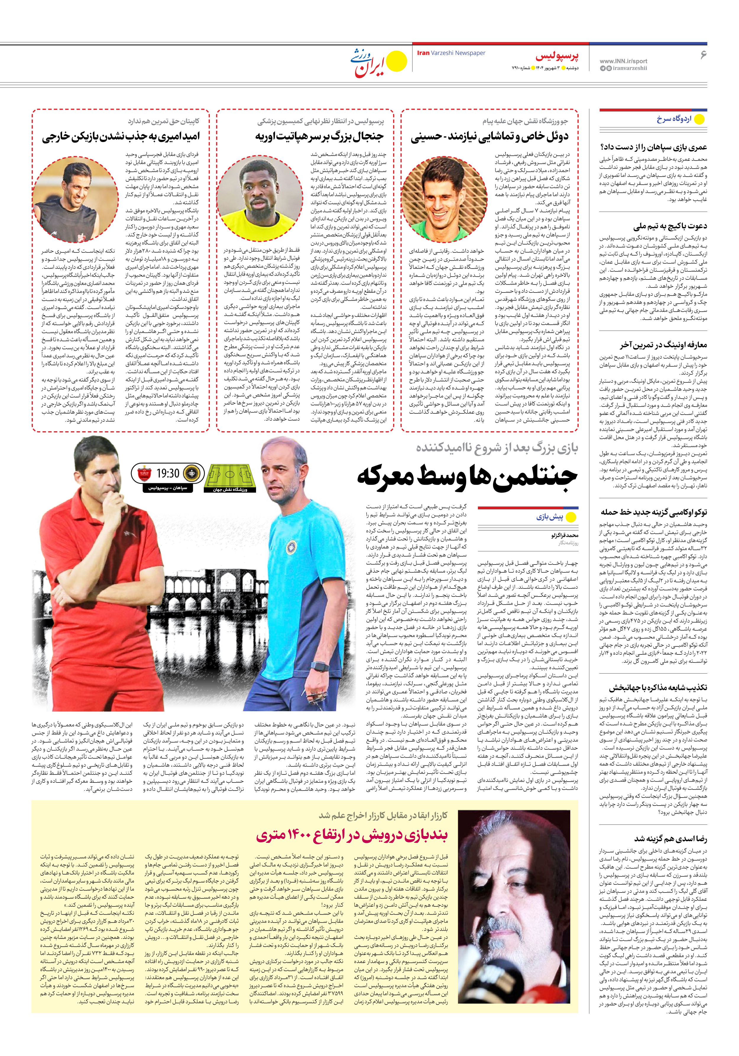 روزنامه ایران ورزشی - شماره هفت هزار و نهصد و ده - ۰۳ شهریور ۱۴۰۴ - صفحه ۶