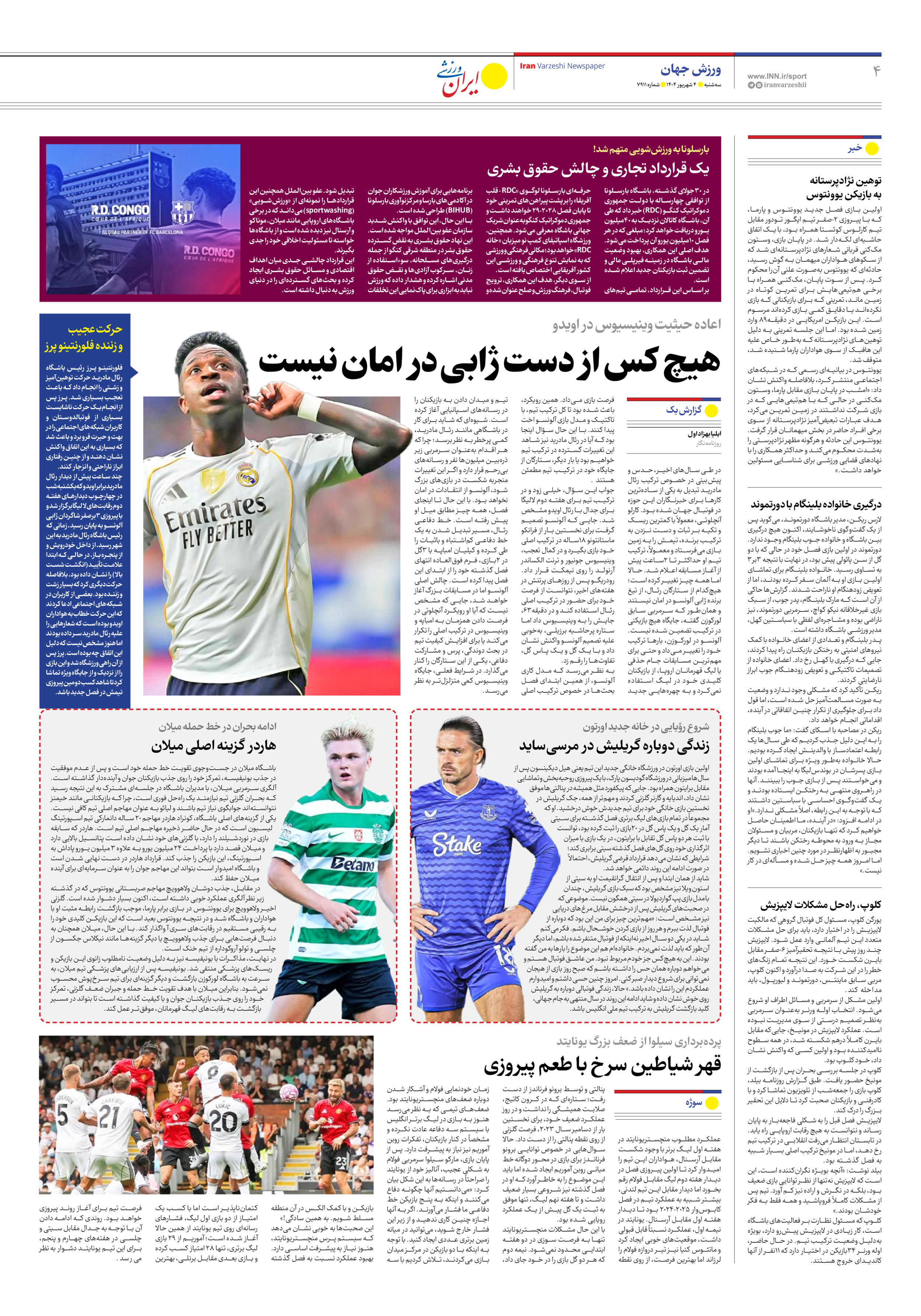 روزنامه ایران ورزشی - شماره هفت هزار و نهصد و یازده - ۰۴ شهریور ۱۴۰۴ - صفحه ۴