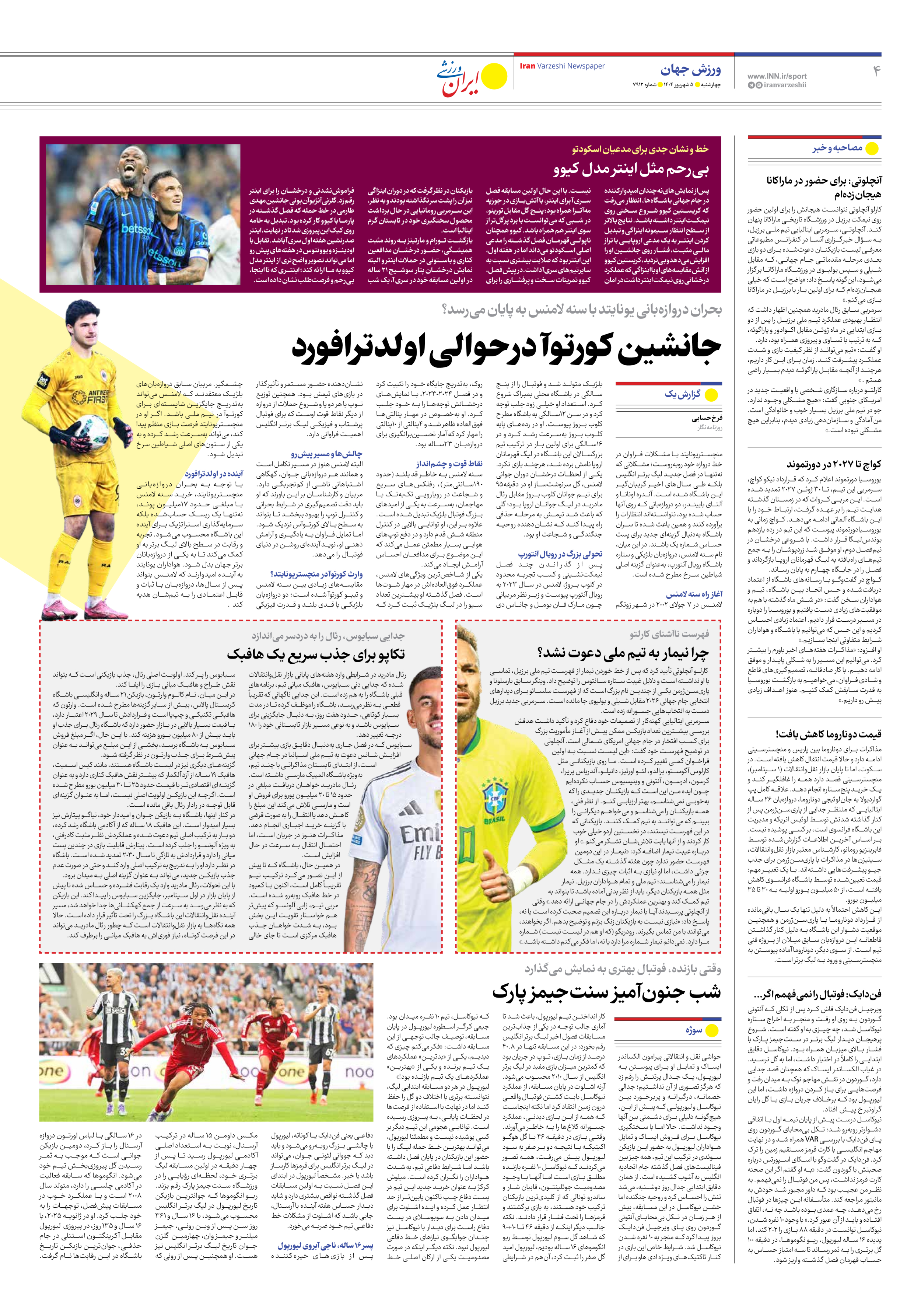 روزنامه ایران ورزشی - شماره هفت هزار و نهصد و دوازده - ۰۵ شهریور ۱۴۰۴ - صفحه ۴