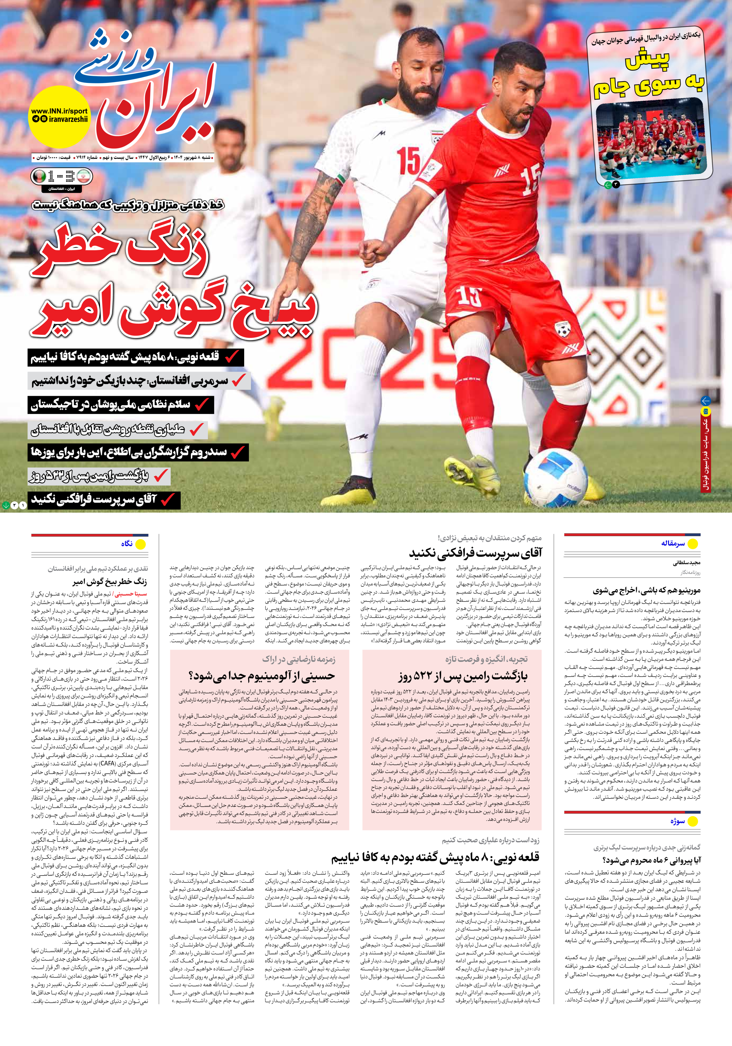 روزنامه ایران ورزشی - شماره هفت هزار و نهصد و چهارده - ۰۸ شهریور ۱۴۰۴