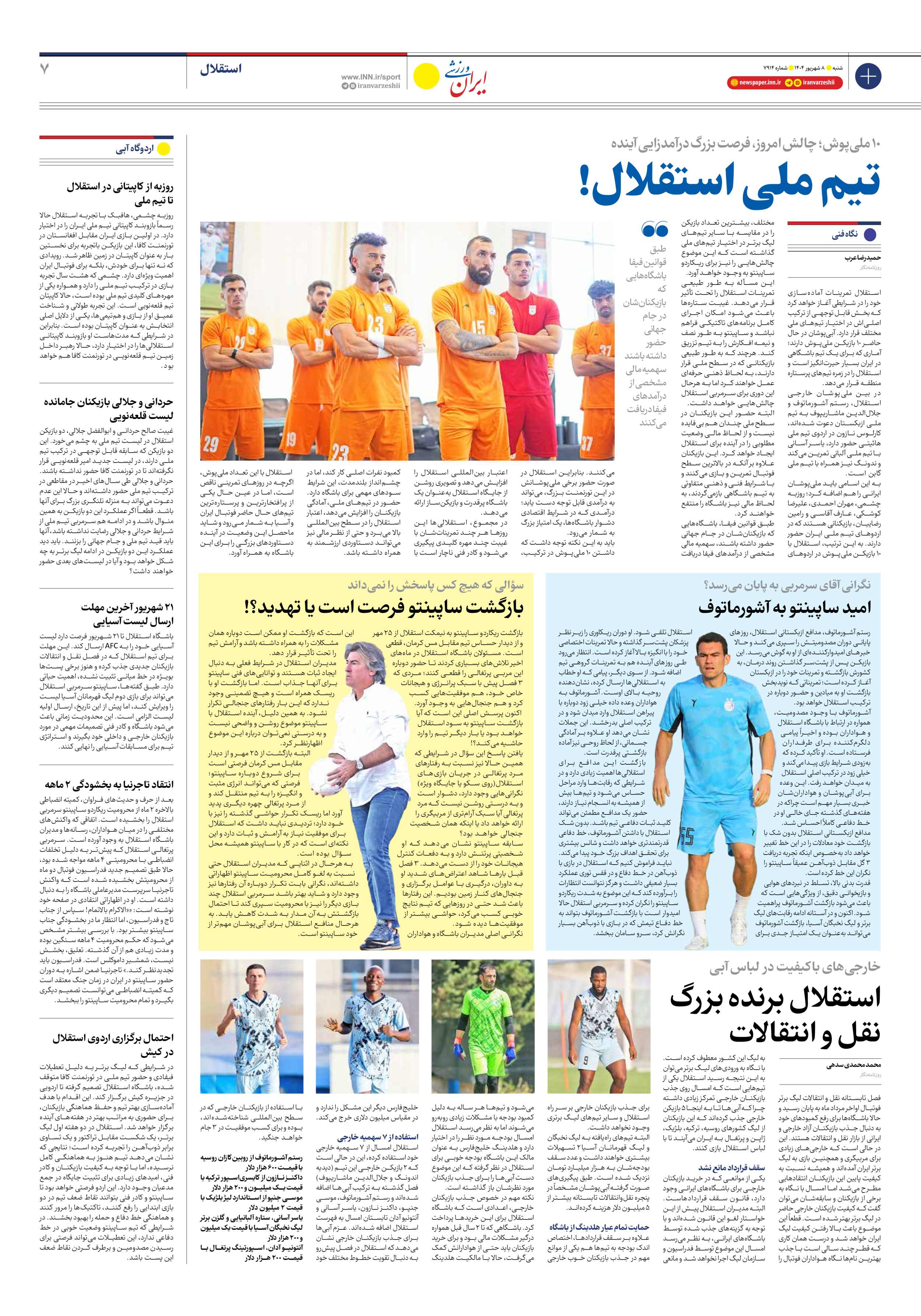 روزنامه ایران ورزشی - شماره هفت هزار و نهصد و چهارده - ۰۸ شهریور ۱۴۰۴ - صفحه ۷