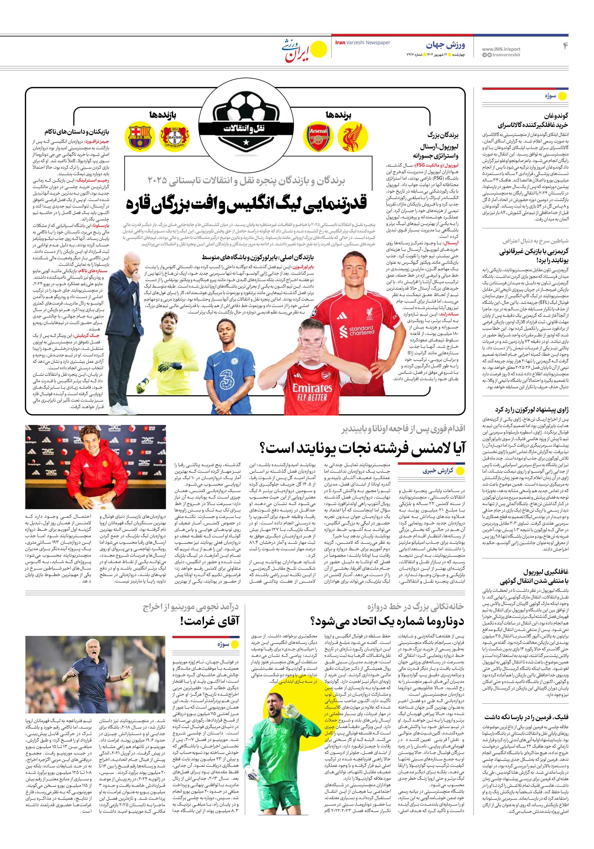 روزنامه ایران ورزشی - شماره هفت هزار و نهصد و هفده - ۱۲ شهریور ۱۴۰۴ - صفحه ۴
