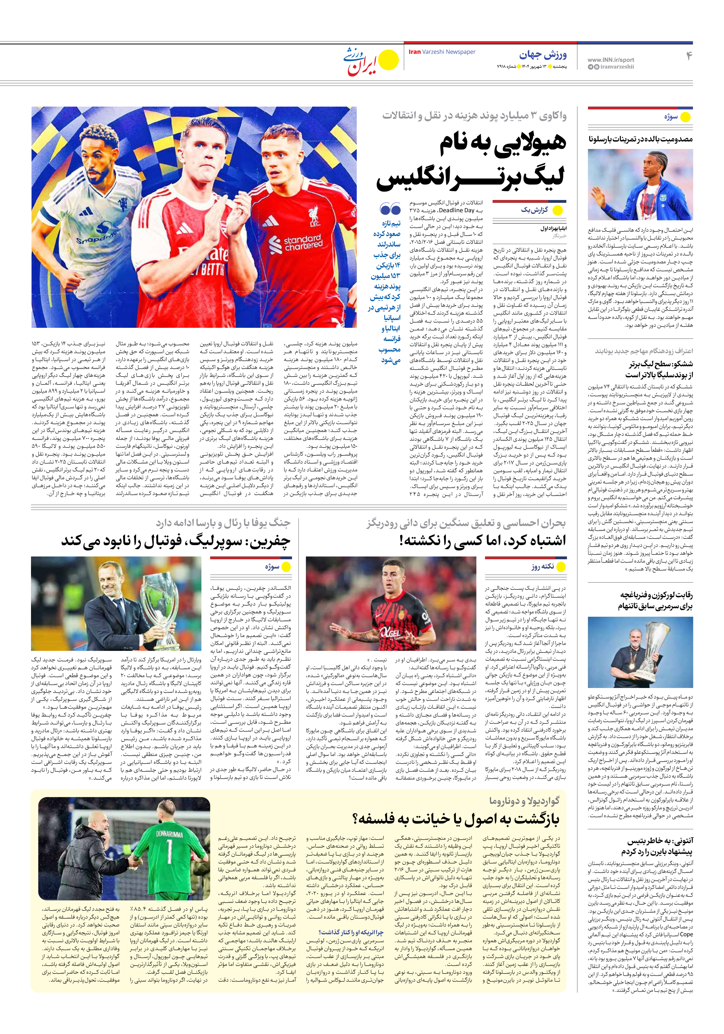 روزنامه ایران ورزشی - شماره هفت هزار و نهصد و هجده - ۱۳ شهریور ۱۴۰۴ - صفحه ۴