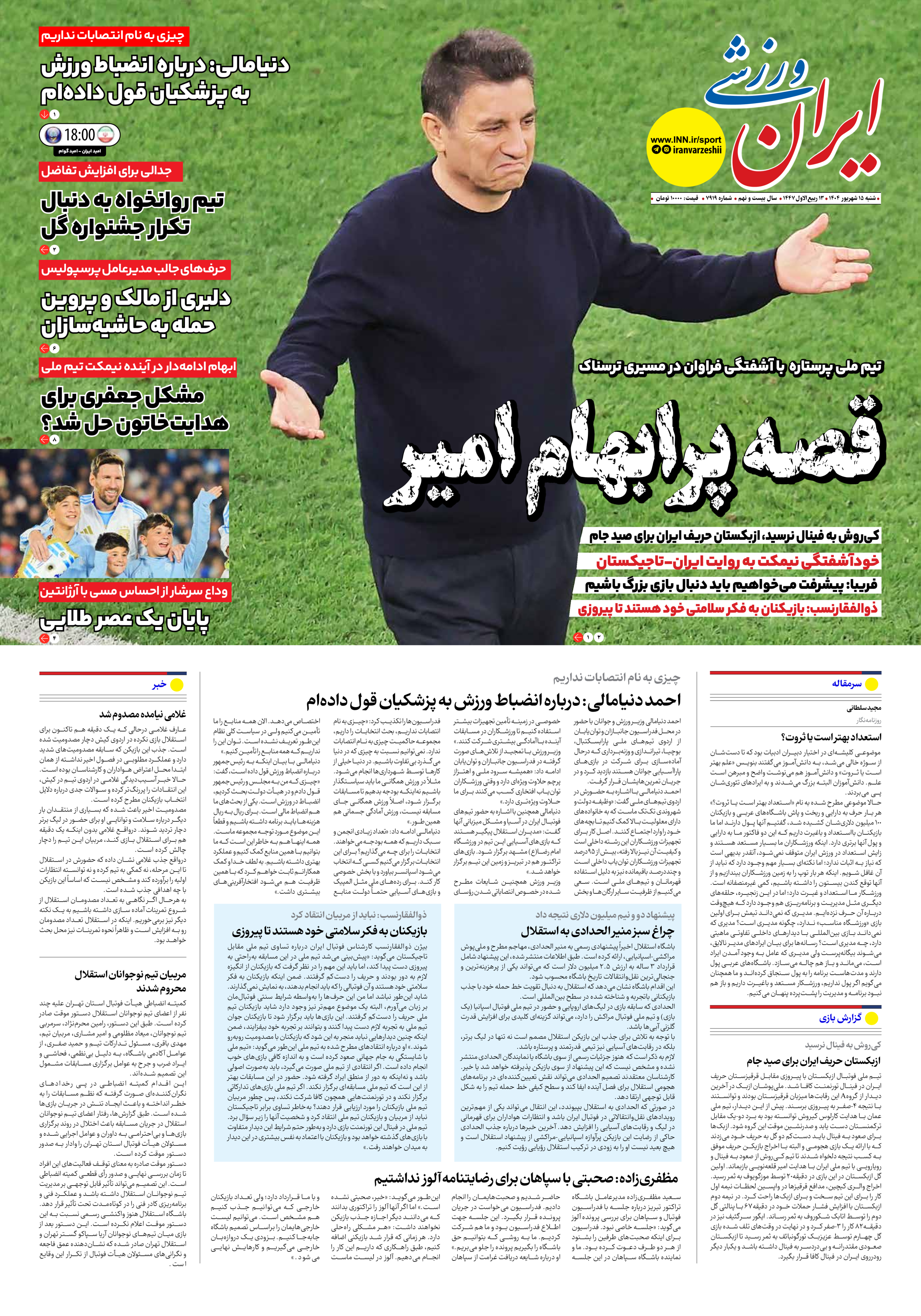 روزنامه ایران ورزشی - شماره هفت هزار و نهصد و نوزده - ۱۵ شهریور ۱۴۰۴