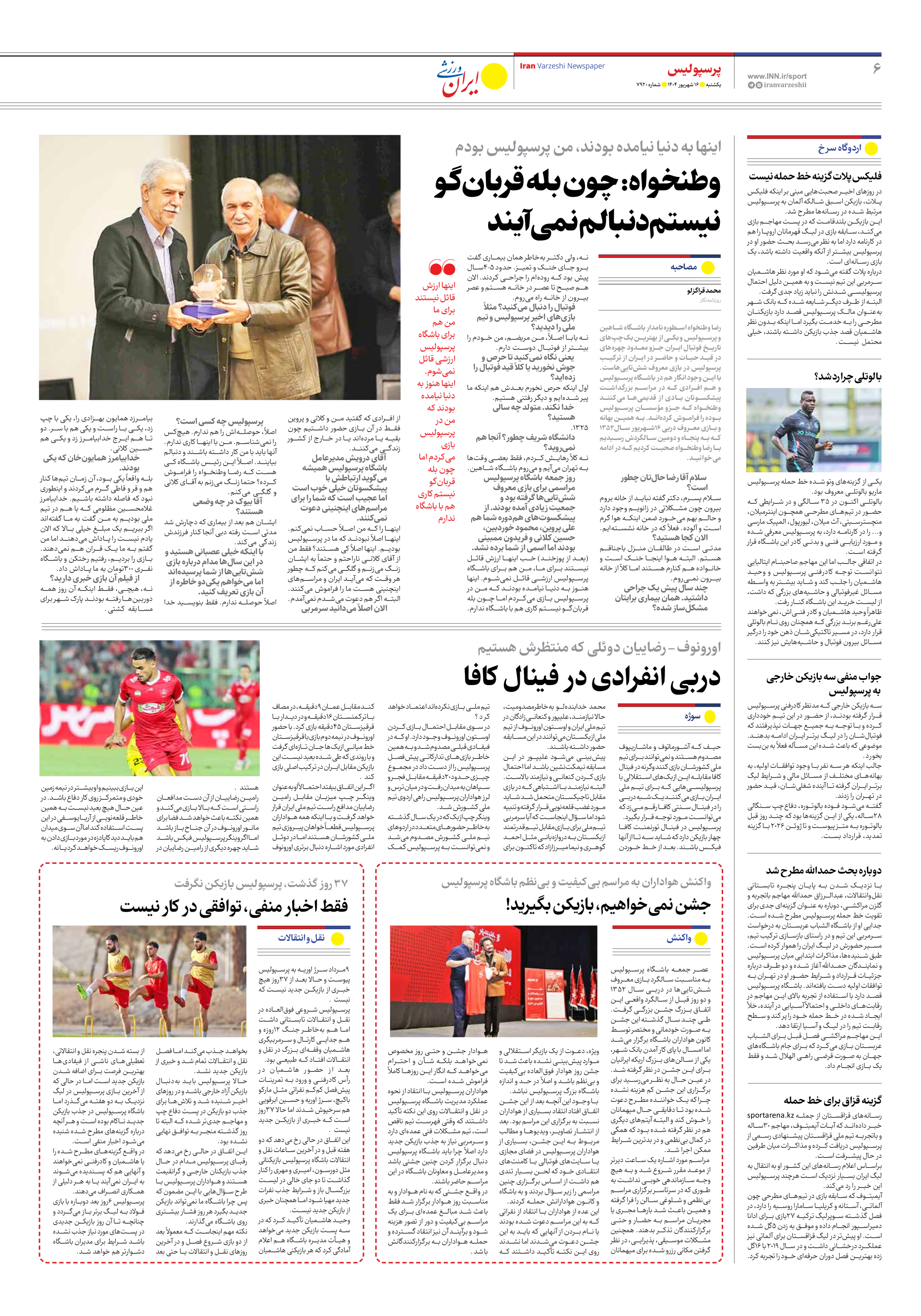 روزنامه ایران ورزشی - شماره هفت هزار و نهصد و بیست - ۱۶ شهریور ۱۴۰۴ - صفحه ۶