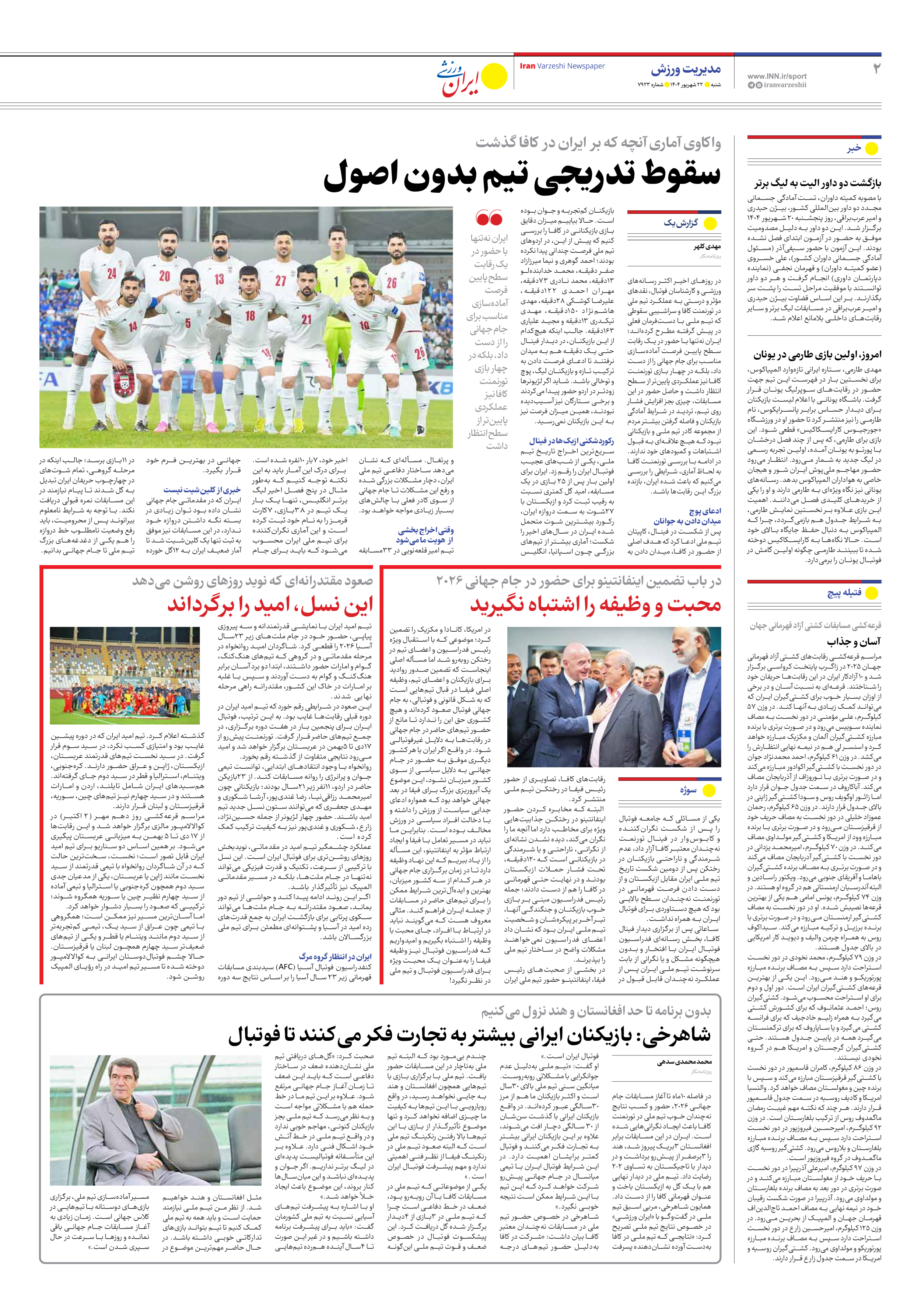 روزنامه ایران ورزشی - شماره هفت هزار و نهصد و بیست و سه - ۲۲ شهریور ۱۴۰۴ - صفحه ۲