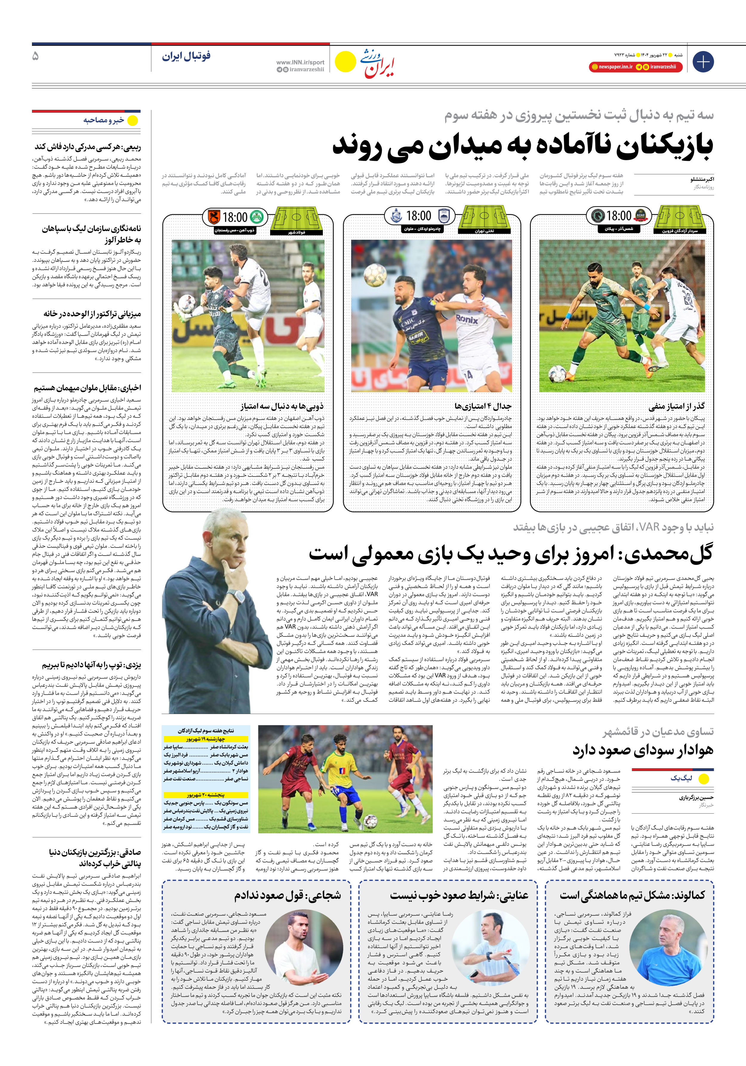 روزنامه ایران ورزشی - شماره هفت هزار و نهصد و بیست و سه - ۲۲ شهریور ۱۴۰۴ - صفحه ۵