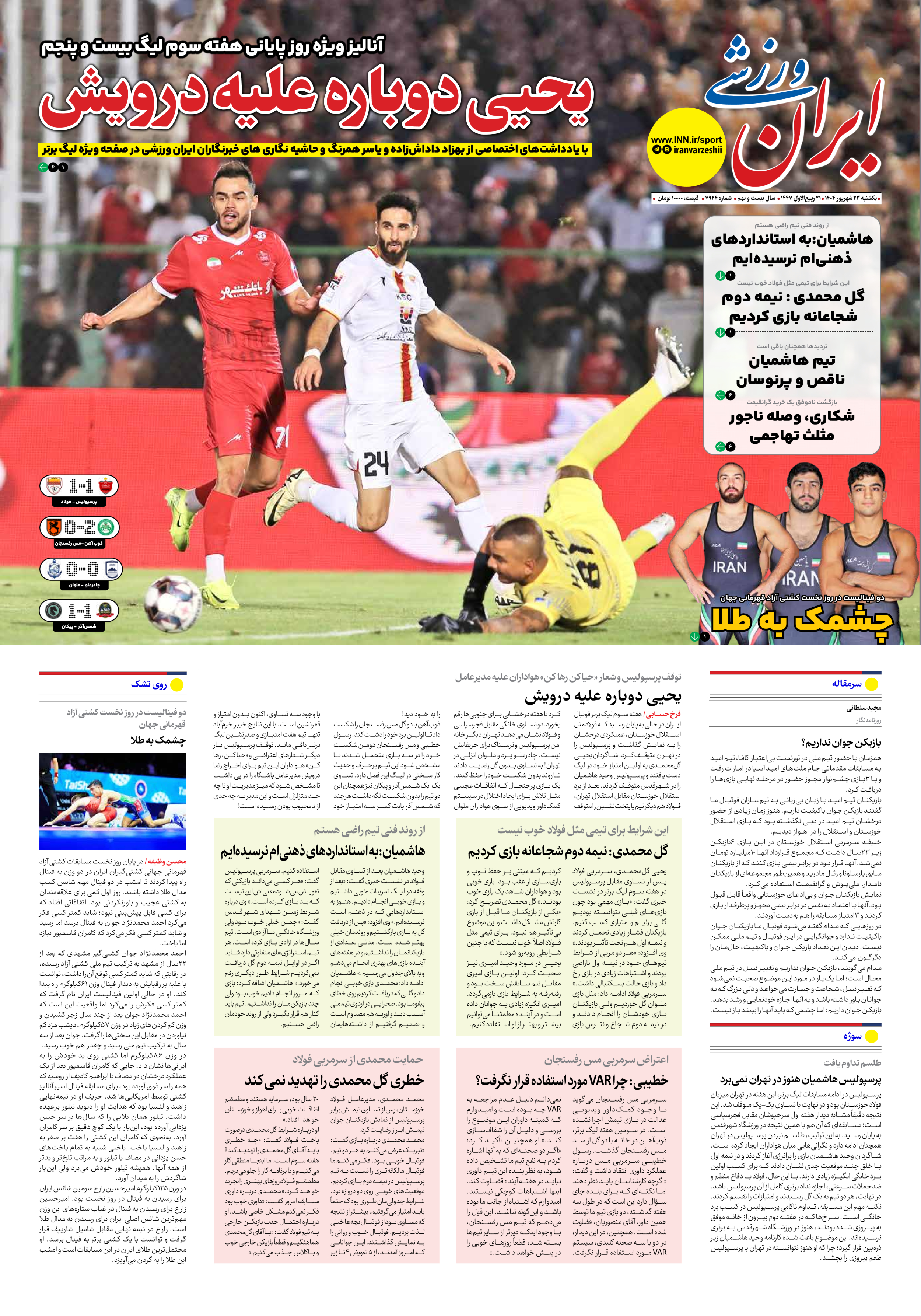 روزنامه ایران ورزشی - شماره هفت هزار و نهصد و بیست و چهار - ۲۳ شهریور ۱۴۰۴