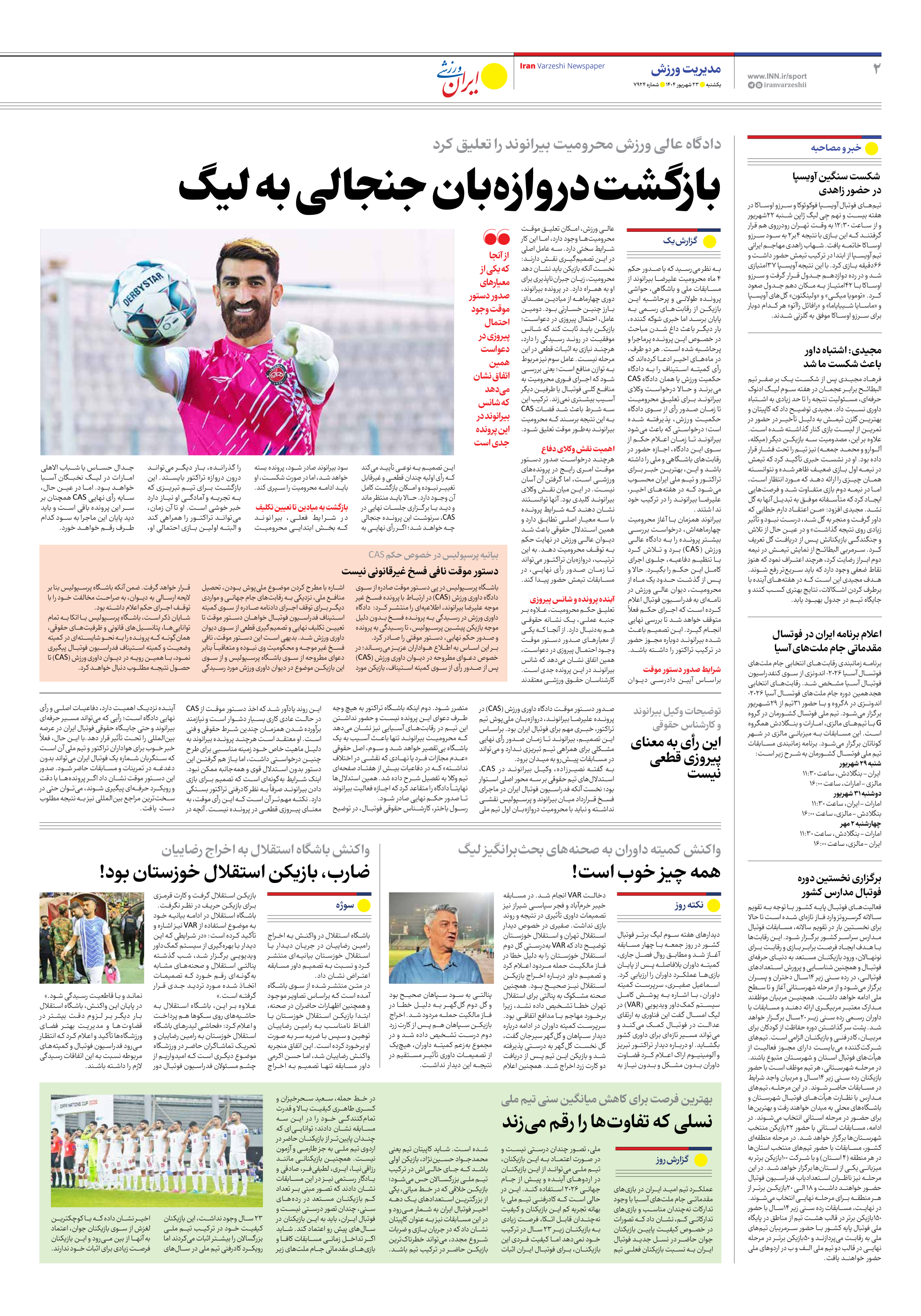 روزنامه ایران ورزشی - شماره هفت هزار و نهصد و بیست و چهار - ۲۳ شهریور ۱۴۰۴ - صفحه ۲