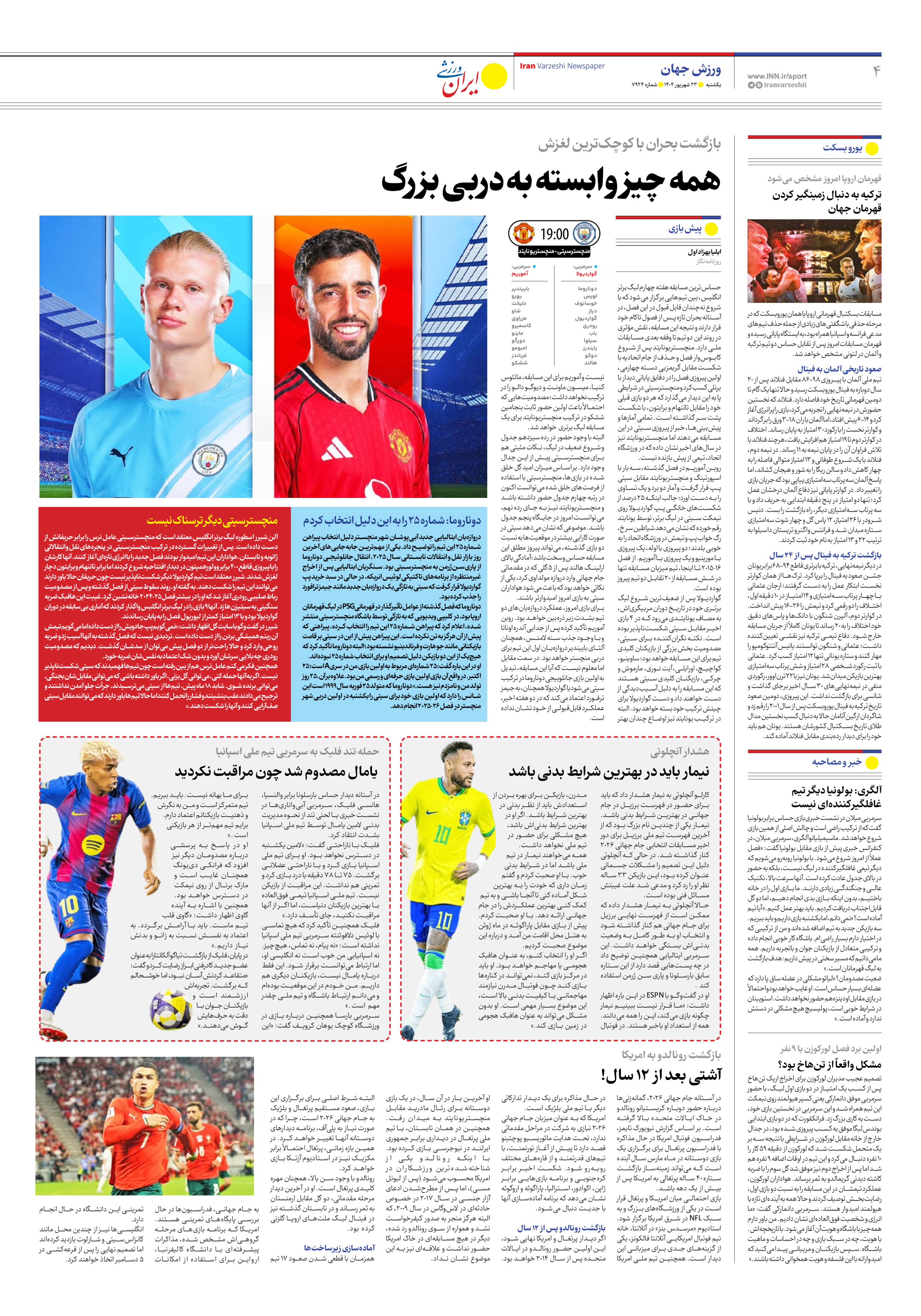 روزنامه ایران ورزشی - شماره هفت هزار و نهصد و بیست و چهار - ۲۳ شهریور ۱۴۰۴ - صفحه ۴