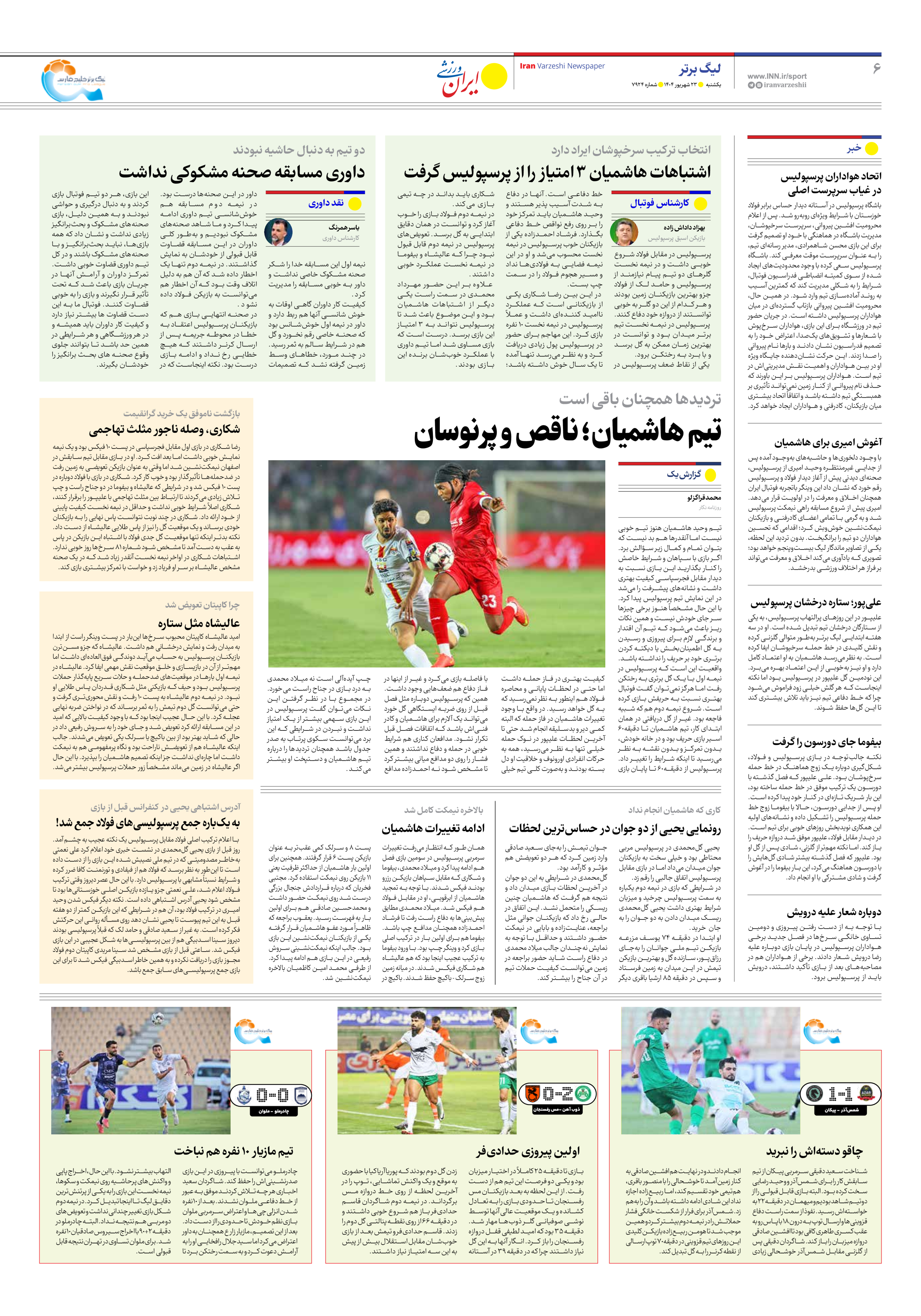 روزنامه ایران ورزشی - شماره هفت هزار و نهصد و بیست و چهار - ۲۳ شهریور ۱۴۰۴ - صفحه ۶