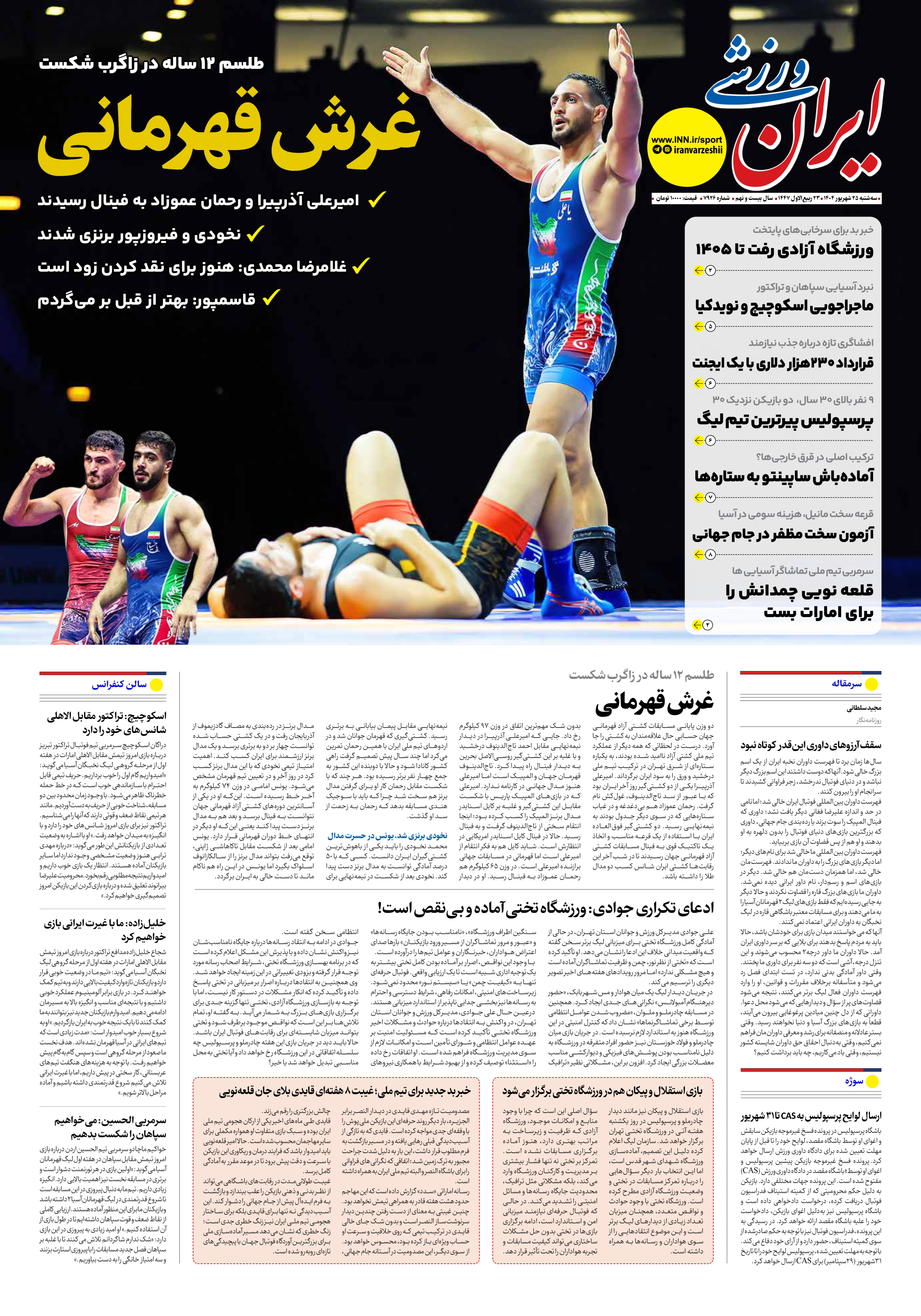 روزنامه ایران ورزشی - شماره هفت هزار و نهصد و بیست و شش - ۲۵ شهریور ۱۴۰۴