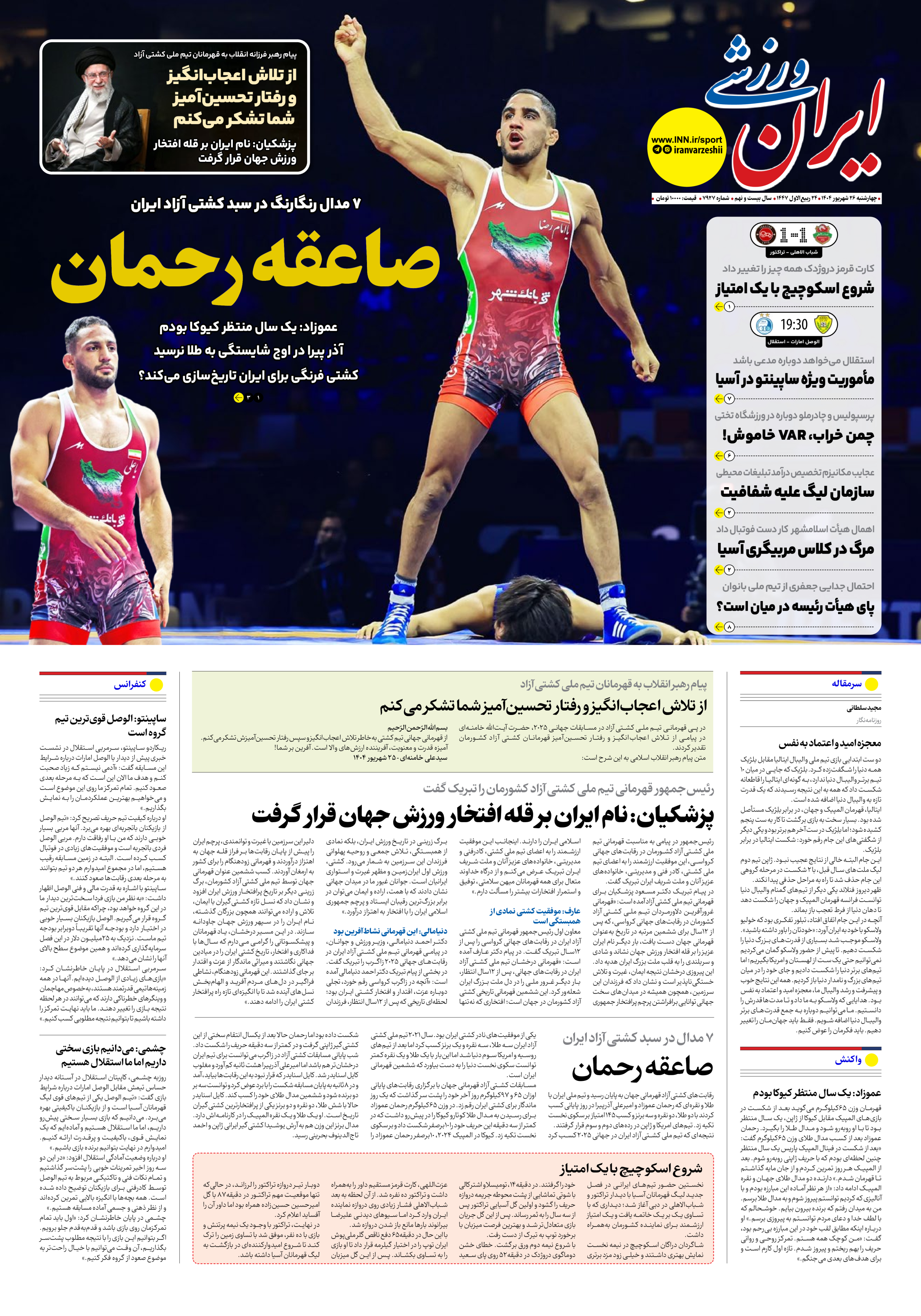 روزنامه ایران ورزشی - شماره هفت هزار و نهصد و بیست و هفت - ۲۶ شهریور ۱۴۰۴