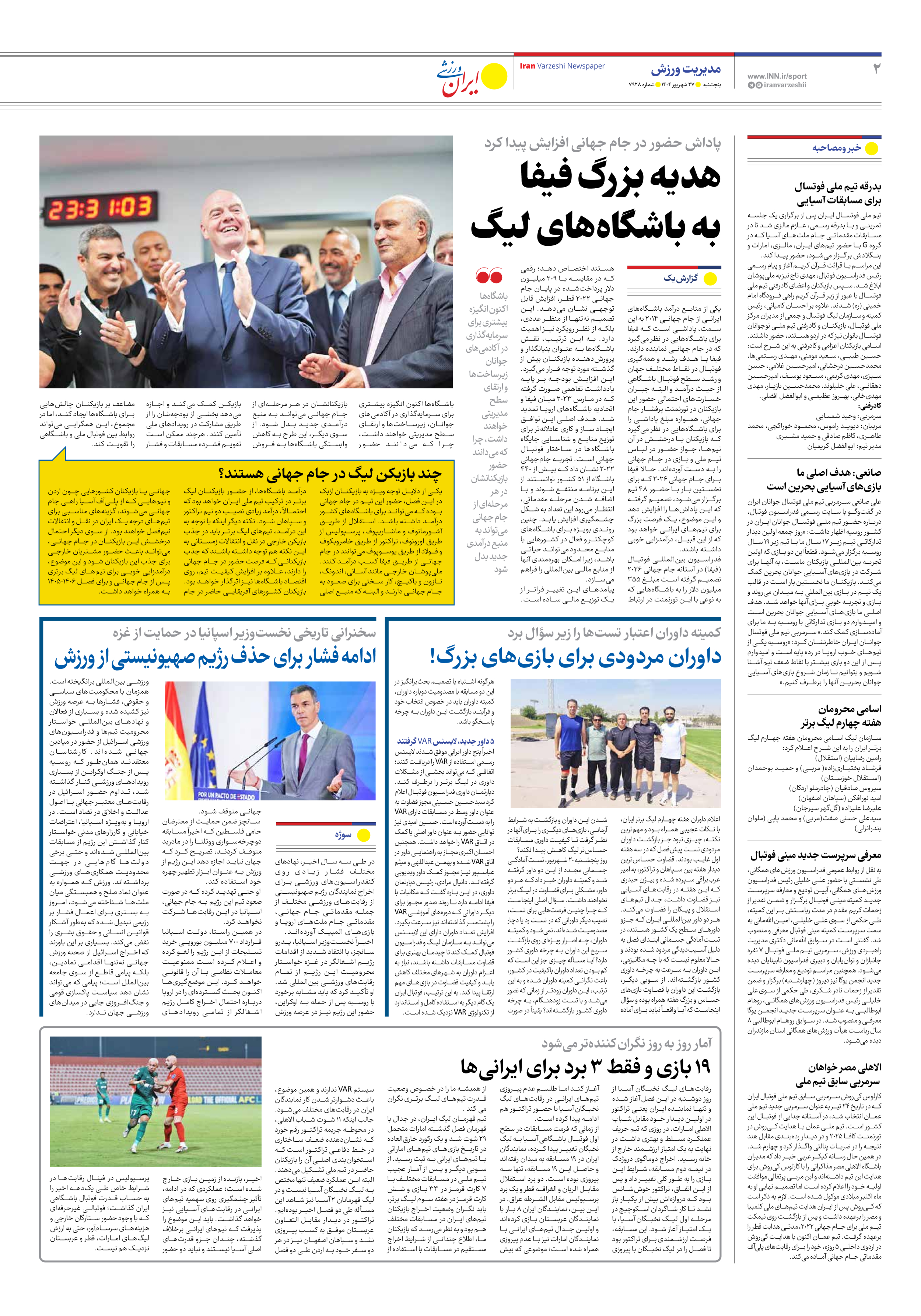 روزنامه ایران ورزشی - شماره هفت هزار و نهصد و بیست و هشت - ۲۷ شهریور ۱۴۰۴ - صفحه ۲