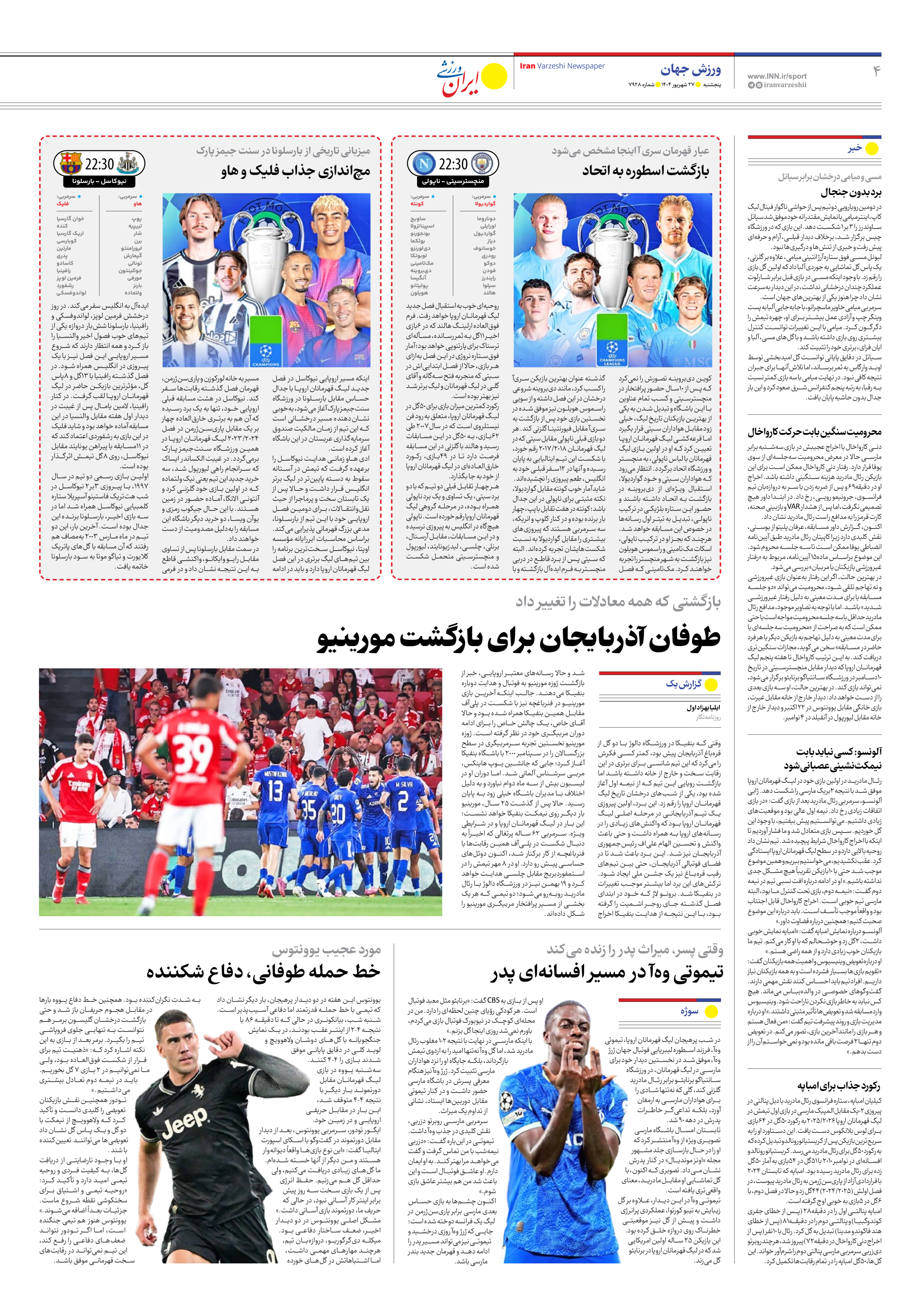 روزنامه ایران ورزشی - شماره هفت هزار و نهصد و بیست و هشت - ۲۷ شهریور ۱۴۰۴ - صفحه ۴