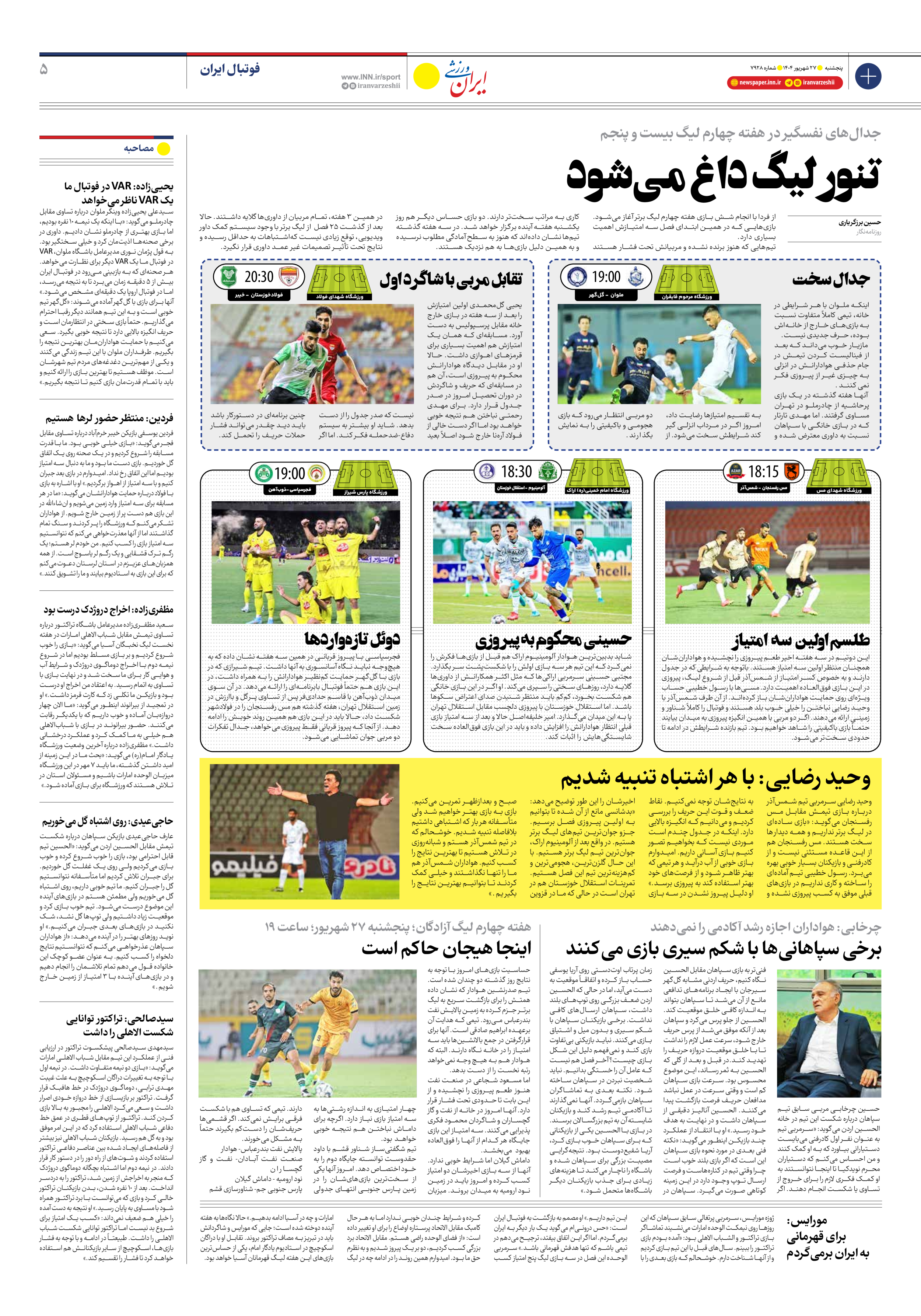روزنامه ایران ورزشی - شماره هفت هزار و نهصد و بیست و هشت - ۲۷ شهریور ۱۴۰۴ - صفحه ۵