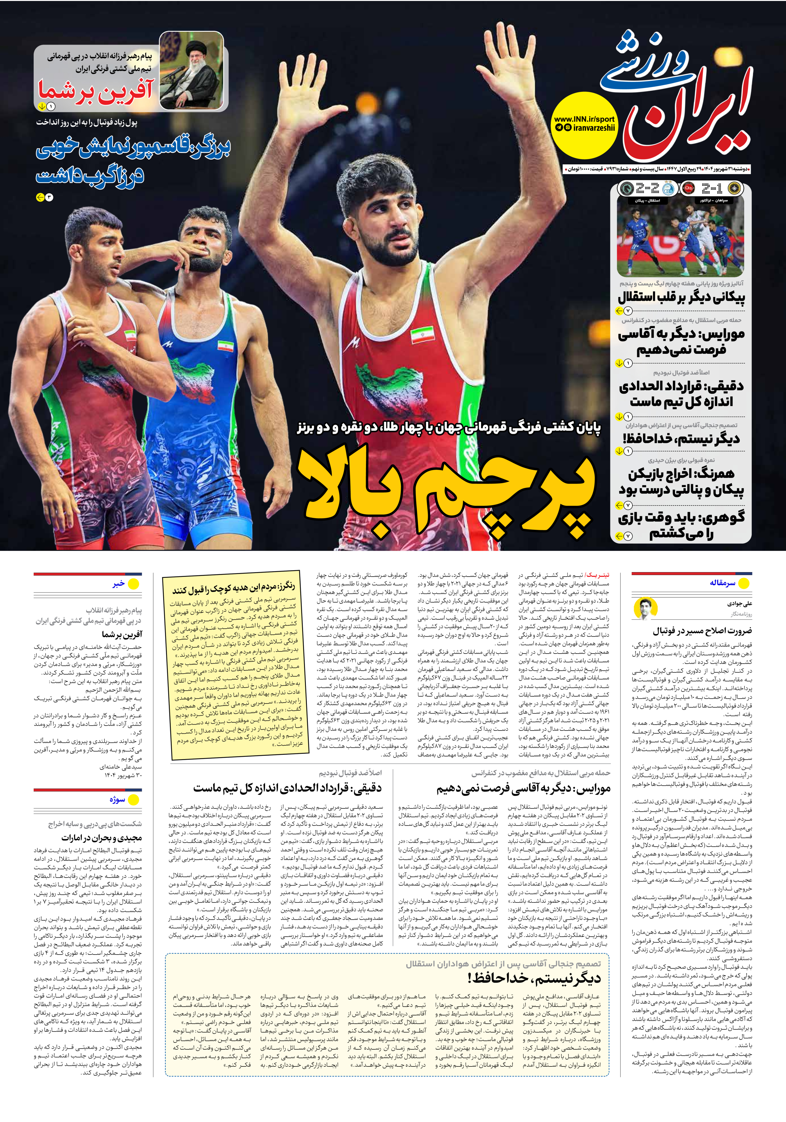 روزنامه ایران ورزشی - شماره هفت هزار و نهصد و سی و یک - ۳۱ شهریور ۱۴۰۴