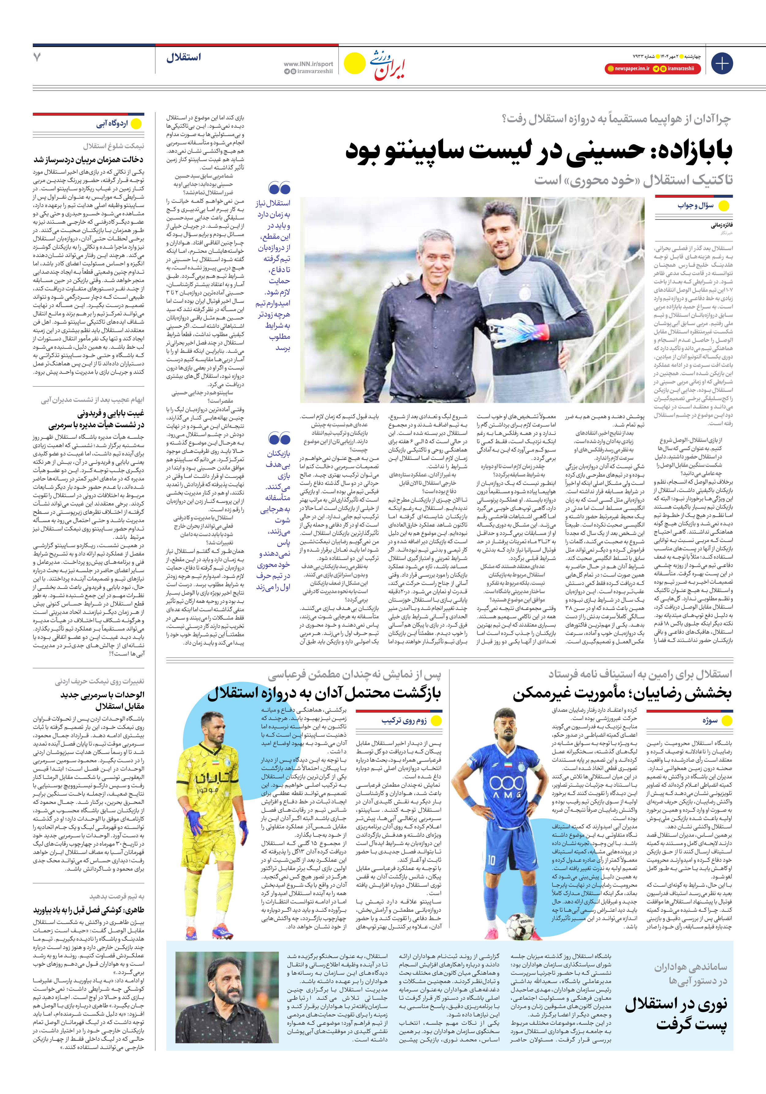 روزنامه ایران ورزشی - شماره هفت هزار و نهصد و سی و سه - ۰۲ مهر ۱۴۰۴ - صفحه ۷