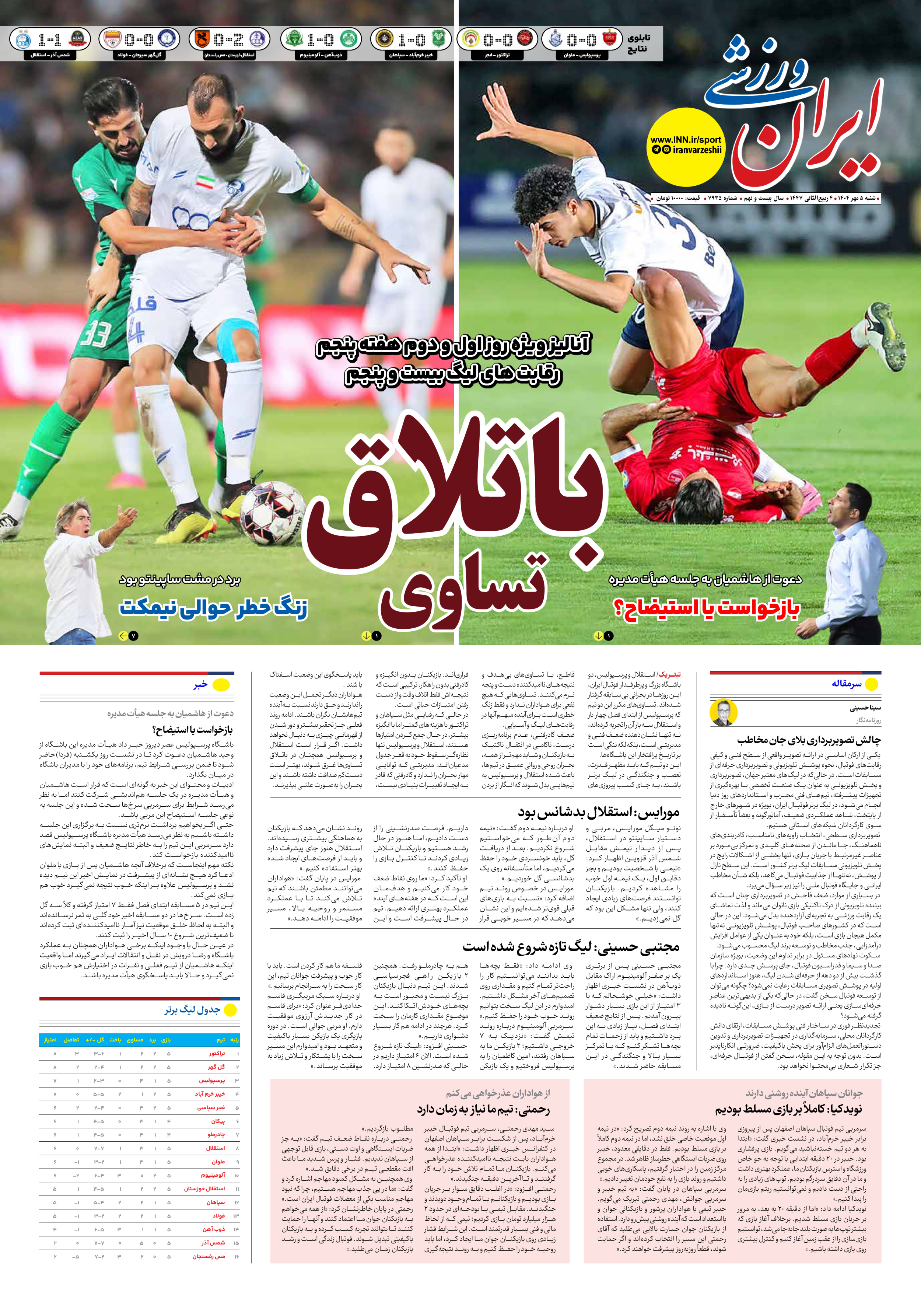 روزنامه ایران ورزشی - شماره هفت هزار و نهصد و سی و پنج - ۰۵ مهر ۱۴۰۴
