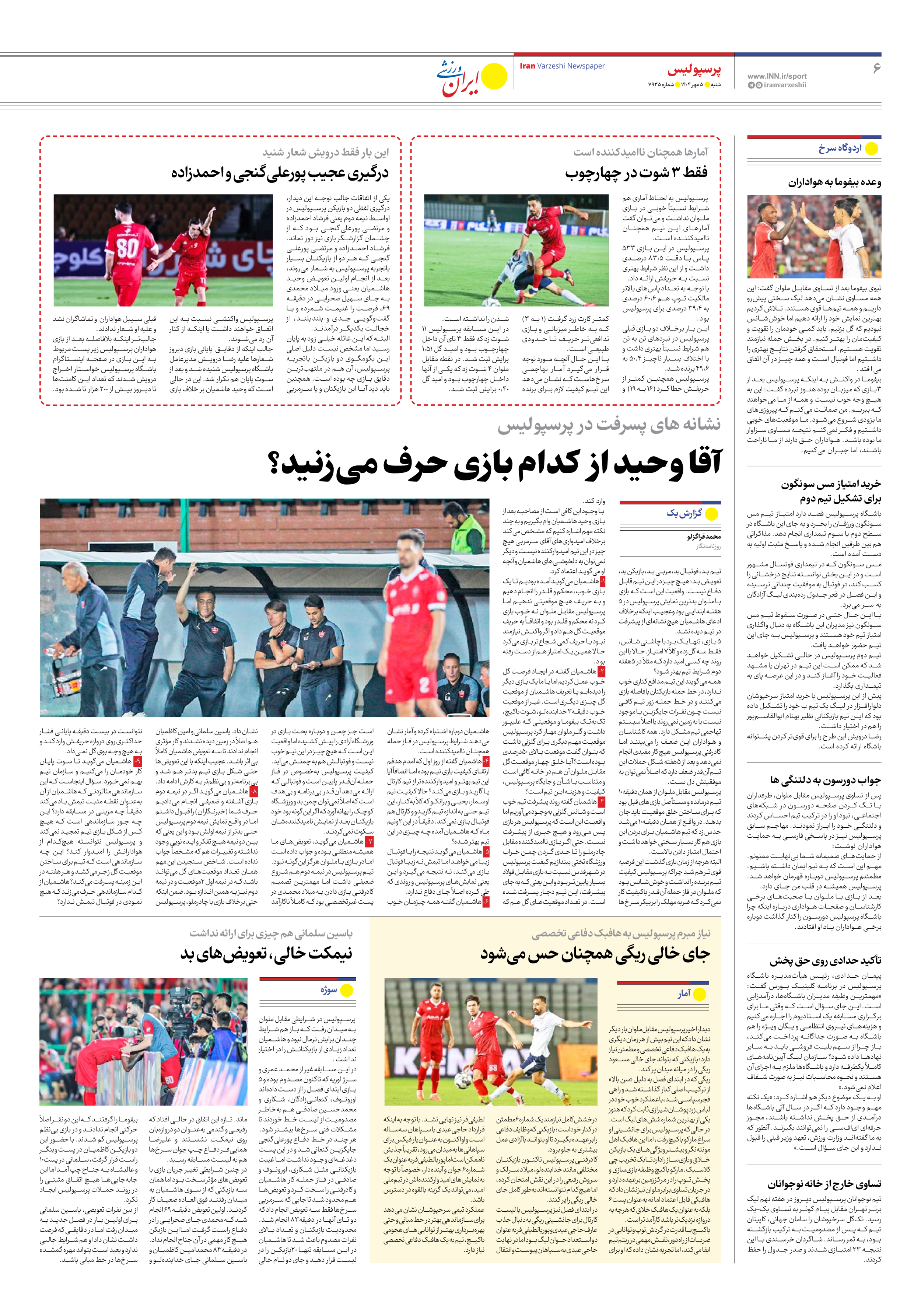 روزنامه ایران ورزشی - شماره هفت هزار و نهصد و سی و پنج - ۰۵ مهر ۱۴۰۴ - صفحه ۶
