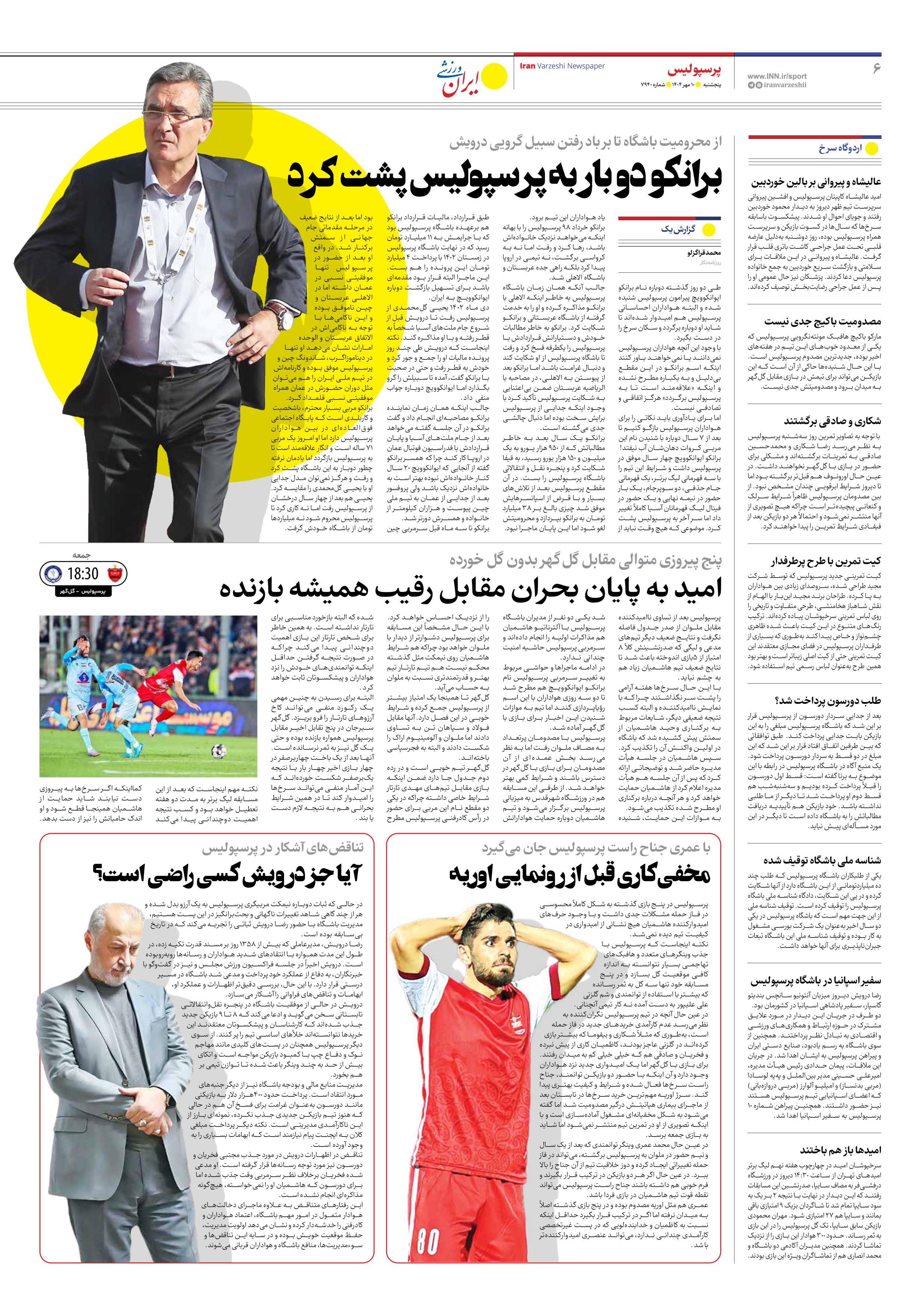 روزنامه ایران ورزشی - شماره هفت هزار و نهصد و چهل - ۱۰ مهر ۱۴۰۴ - صفحه ۶