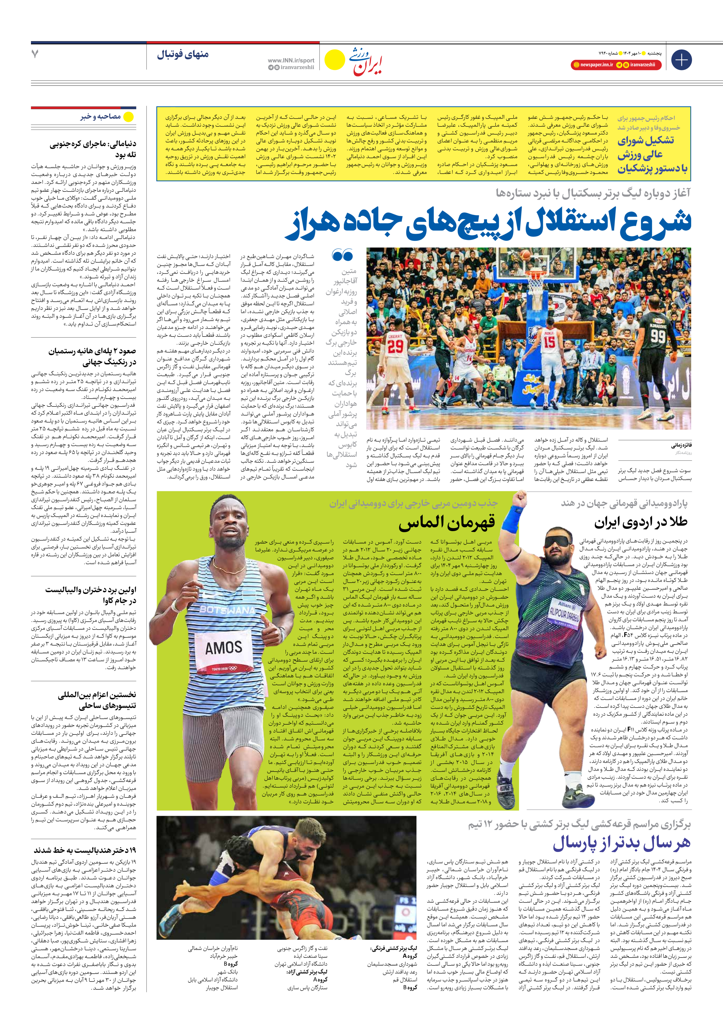 روزنامه ایران ورزشی - شماره هفت هزار و نهصد و چهل - ۱۰ مهر ۱۴۰۴ - صفحه ۷