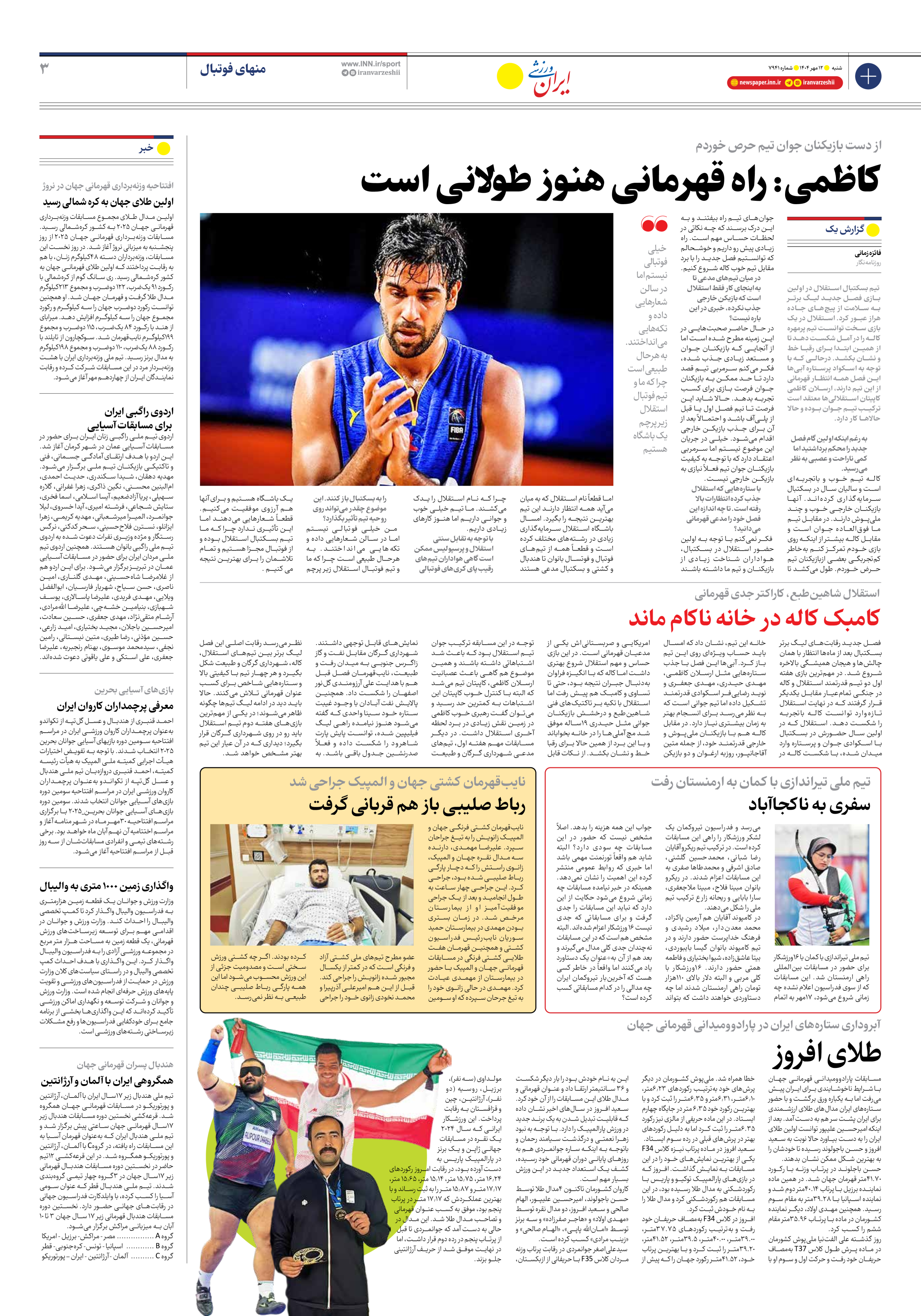 روزنامه ایران ورزشی - شماره هفت هزار و نهصد و چهل و یک - ۱۲ مهر ۱۴۰۴ - صفحه ۳