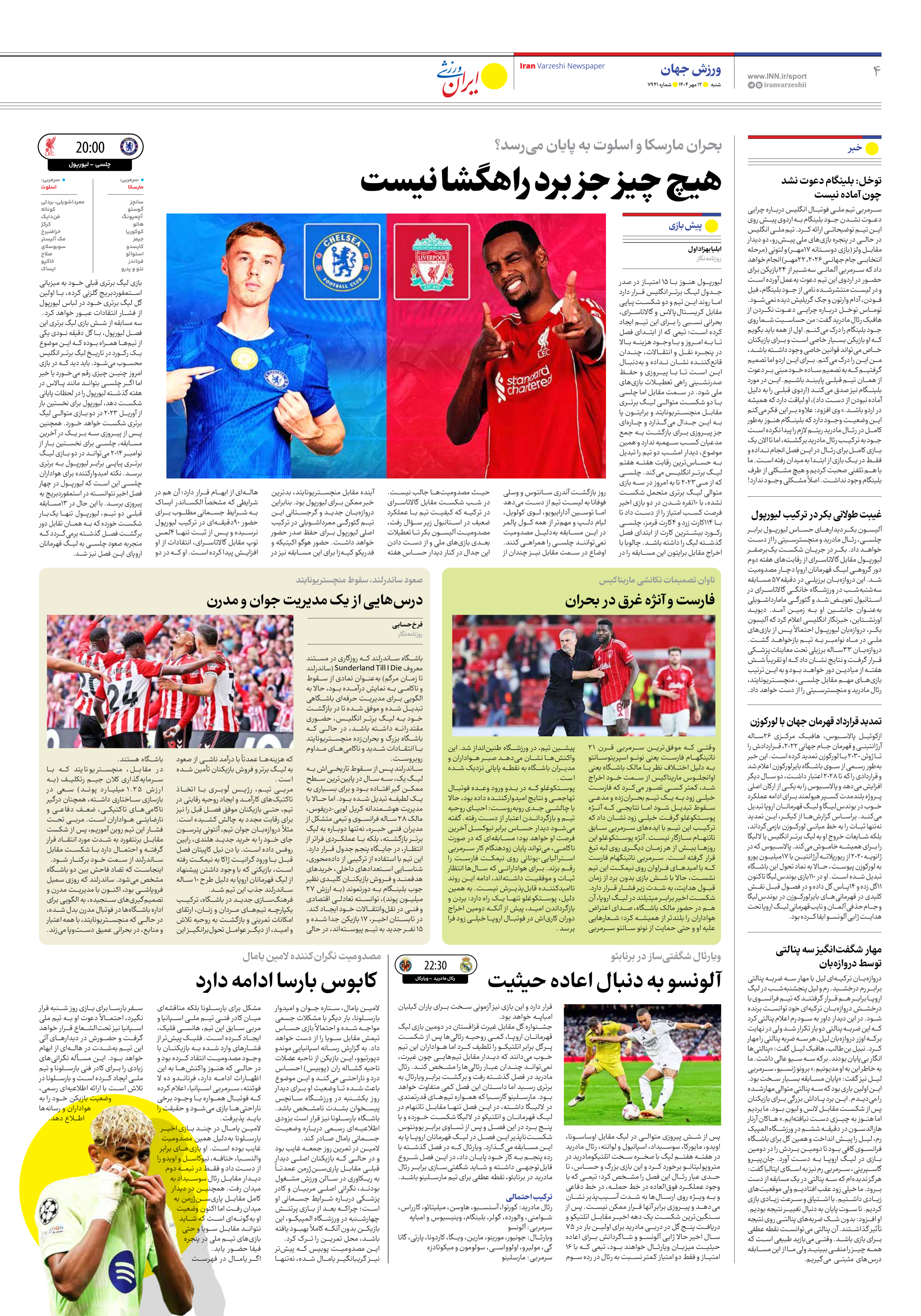 روزنامه ایران ورزشی - شماره هفت هزار و نهصد و چهل و یک - ۱۲ مهر ۱۴۰۴ - صفحه ۴