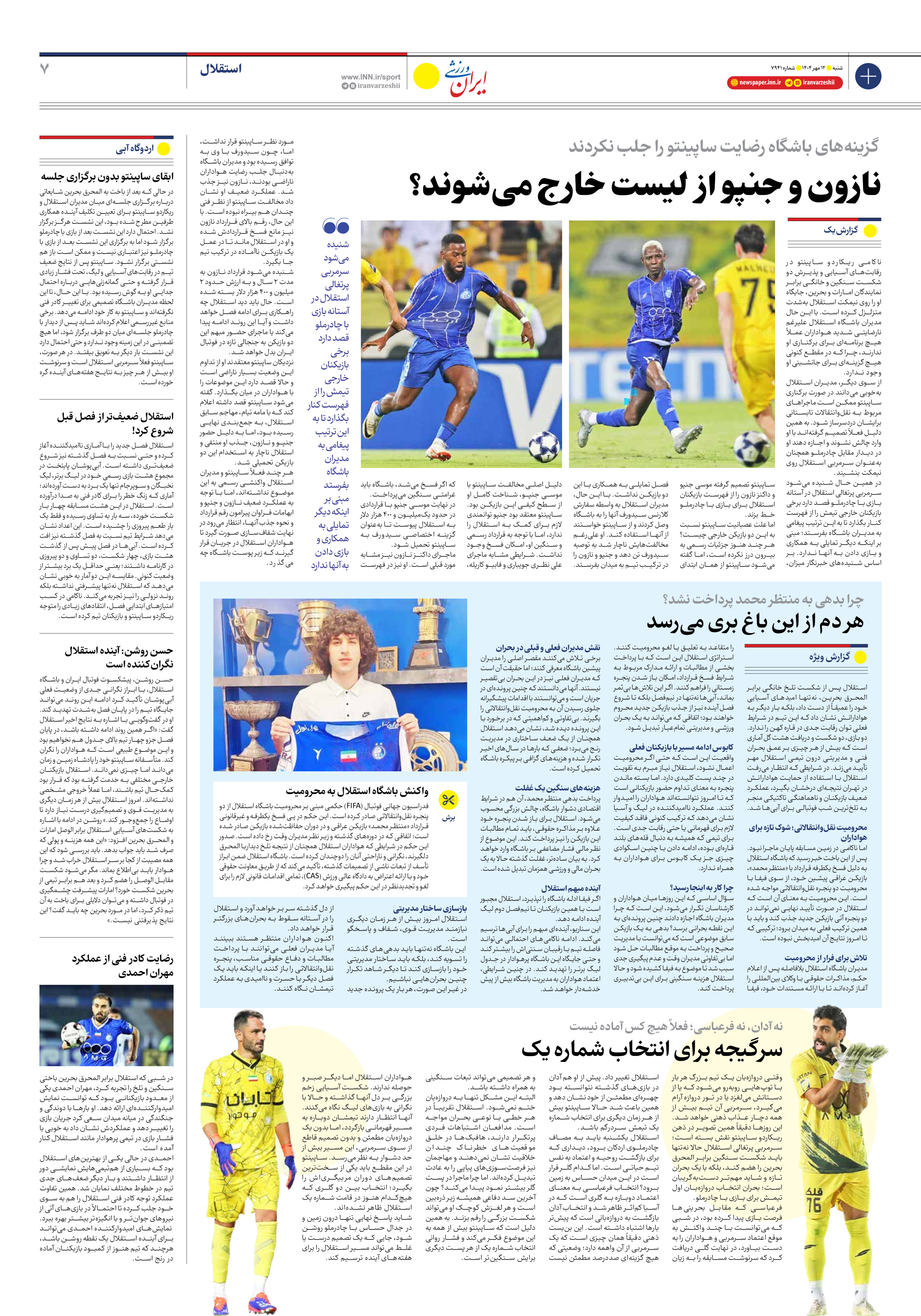 روزنامه ایران ورزشی - شماره هفت هزار و نهصد و چهل و یک - ۱۲ مهر ۱۴۰۴ - صفحه ۷