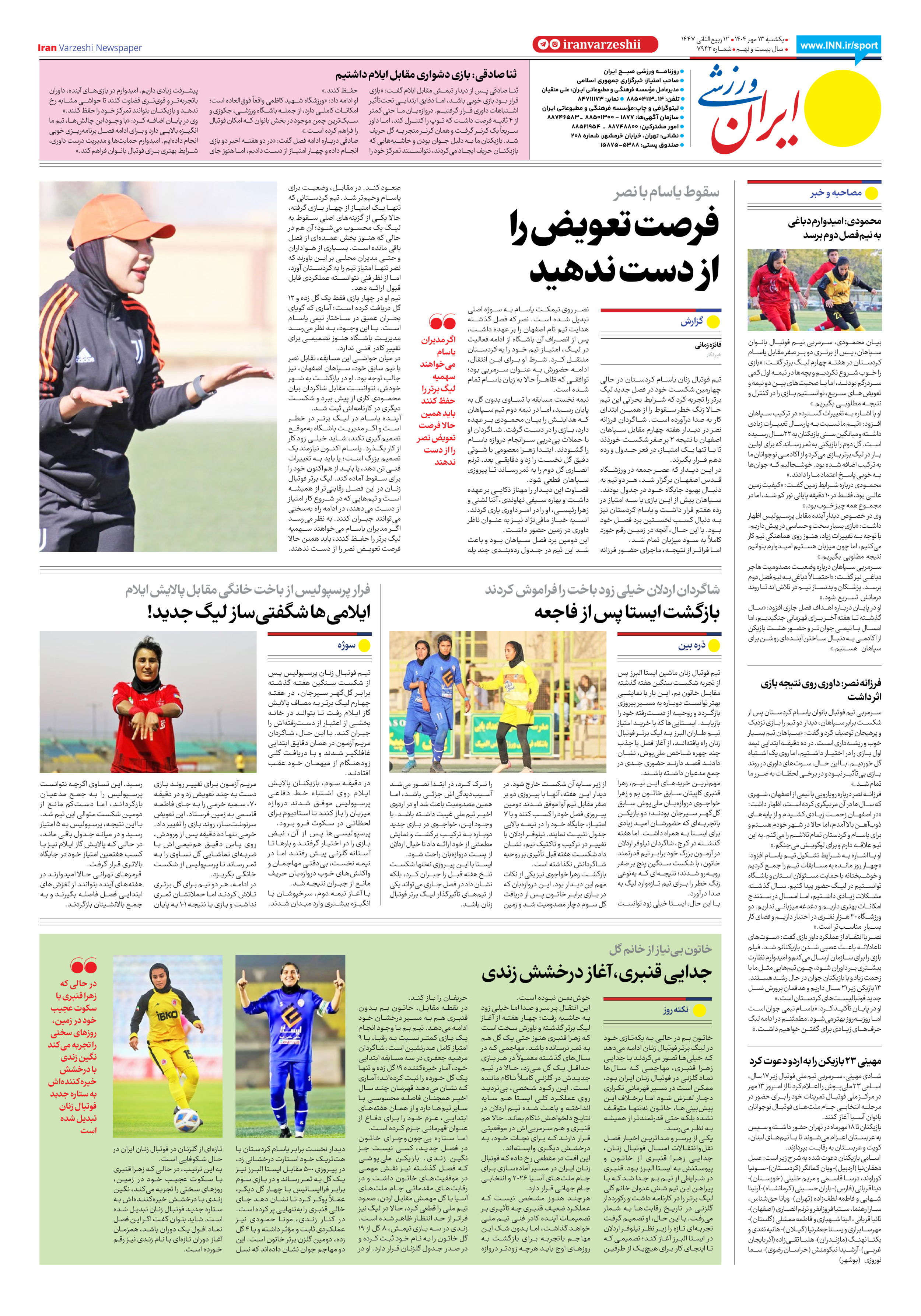 روزنامه ایران ورزشی - شماره هفت هزار و نهصد و چهل و دو - ۱۳ مهر ۱۴۰۴ - صفحه ۸