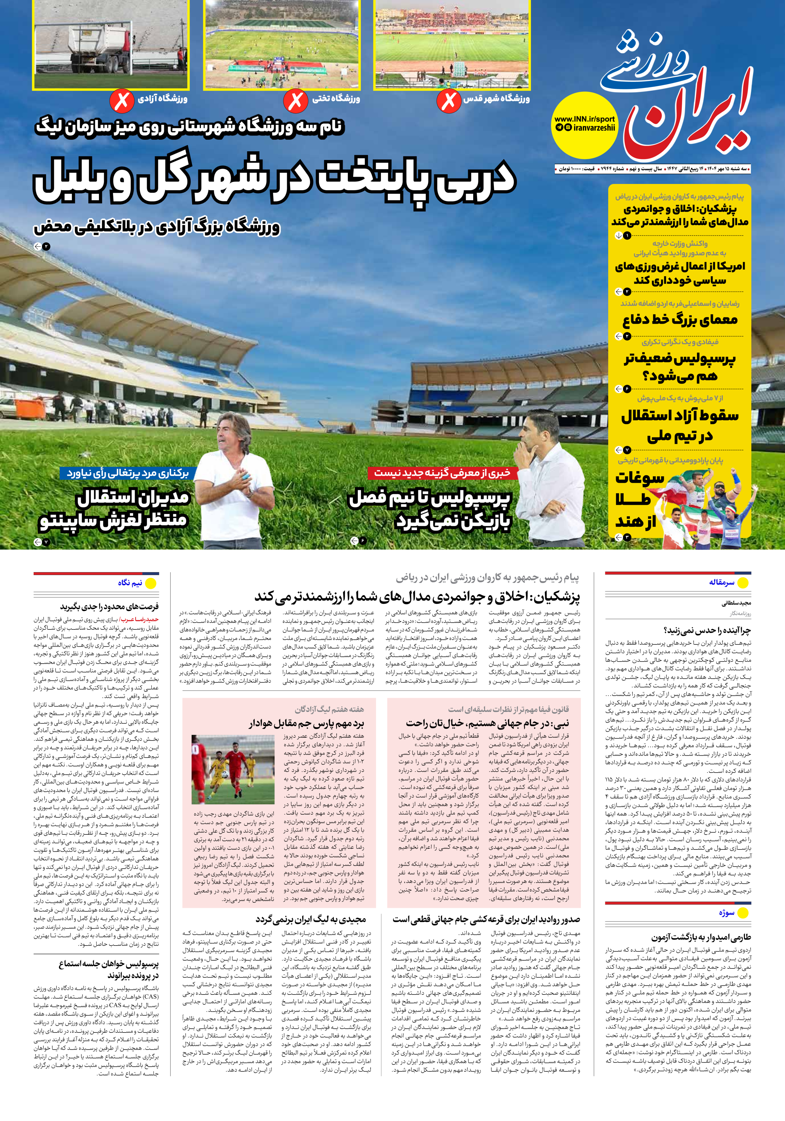 شماره هفت هزار و نهصد و چهل و چهار - ۱۵ مهر ۱۴۰۴