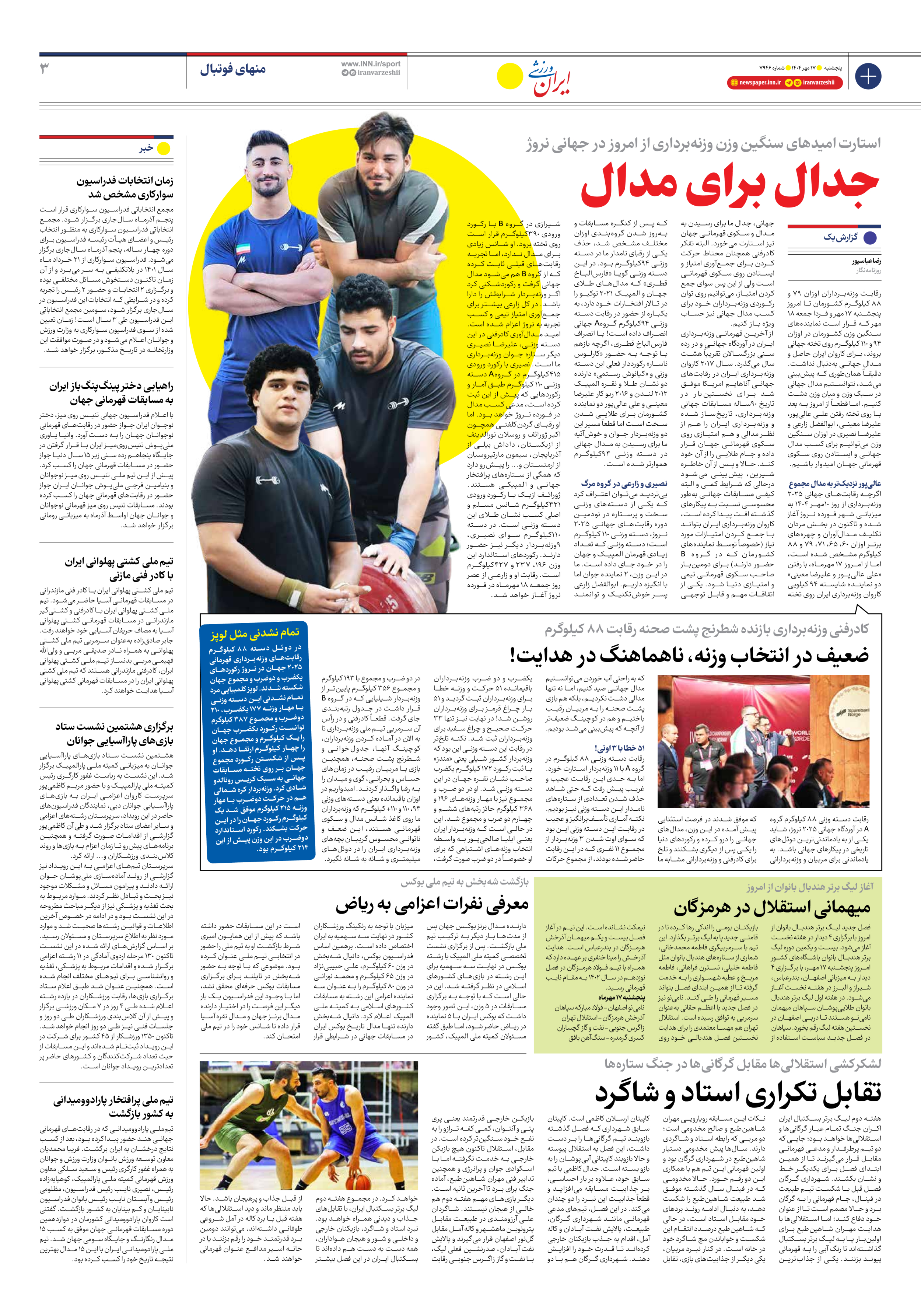روزنامه ایران ورزشی - شماره هفت هزار و نهصد و چهل و شش - ۱۷ مهر ۱۴۰۴ - صفحه ۳