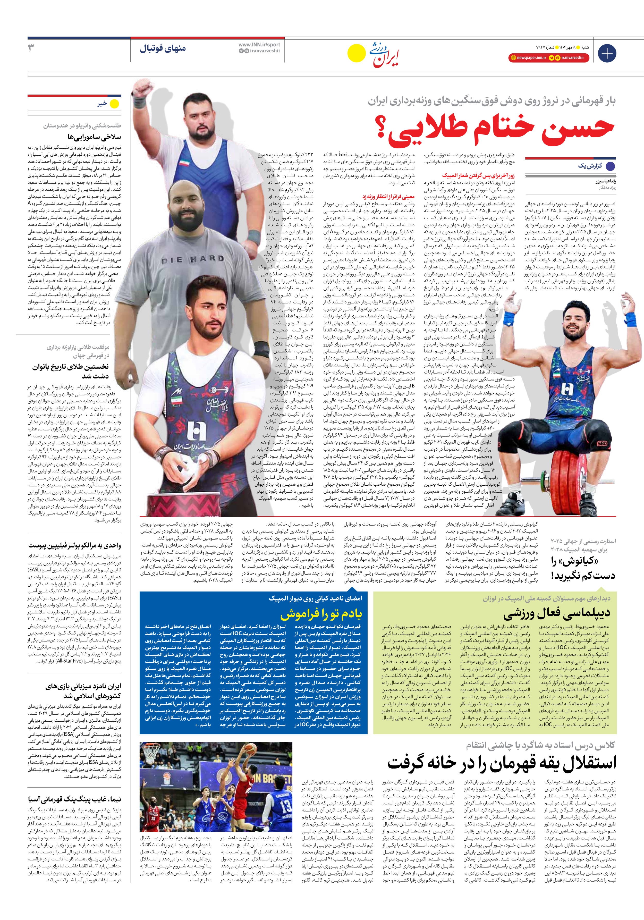 روزنامه ایران ورزشی - شماره هفت هزار و نهصد و چهل و هفت - ۱۹ مهر ۱۴۰۴ - صفحه ۳