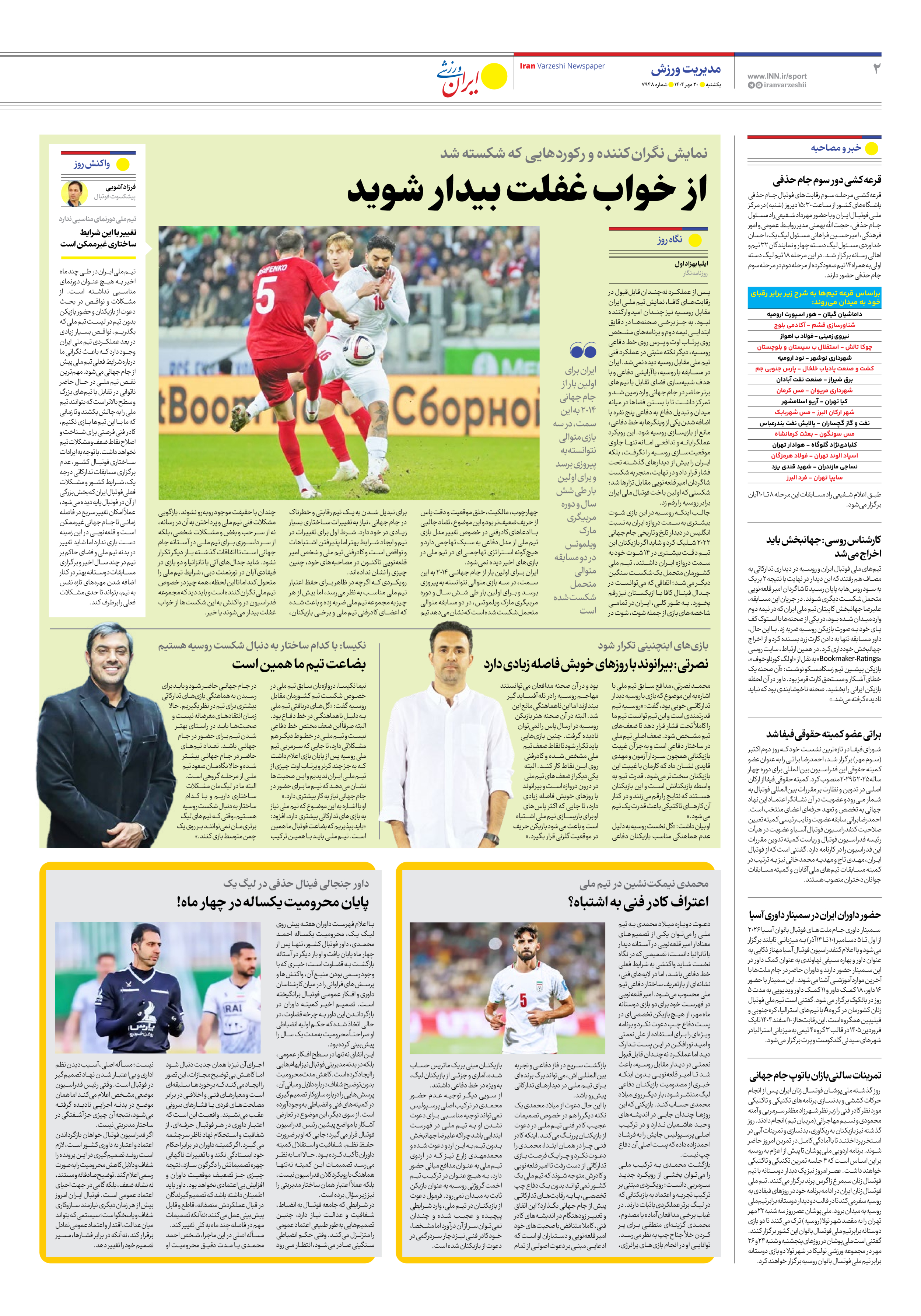 روزنامه ایران ورزشی - شماره هفت هزار و نهصد و چهل و هشت - ۲۰ مهر ۱۴۰۴ - صفحه ۲