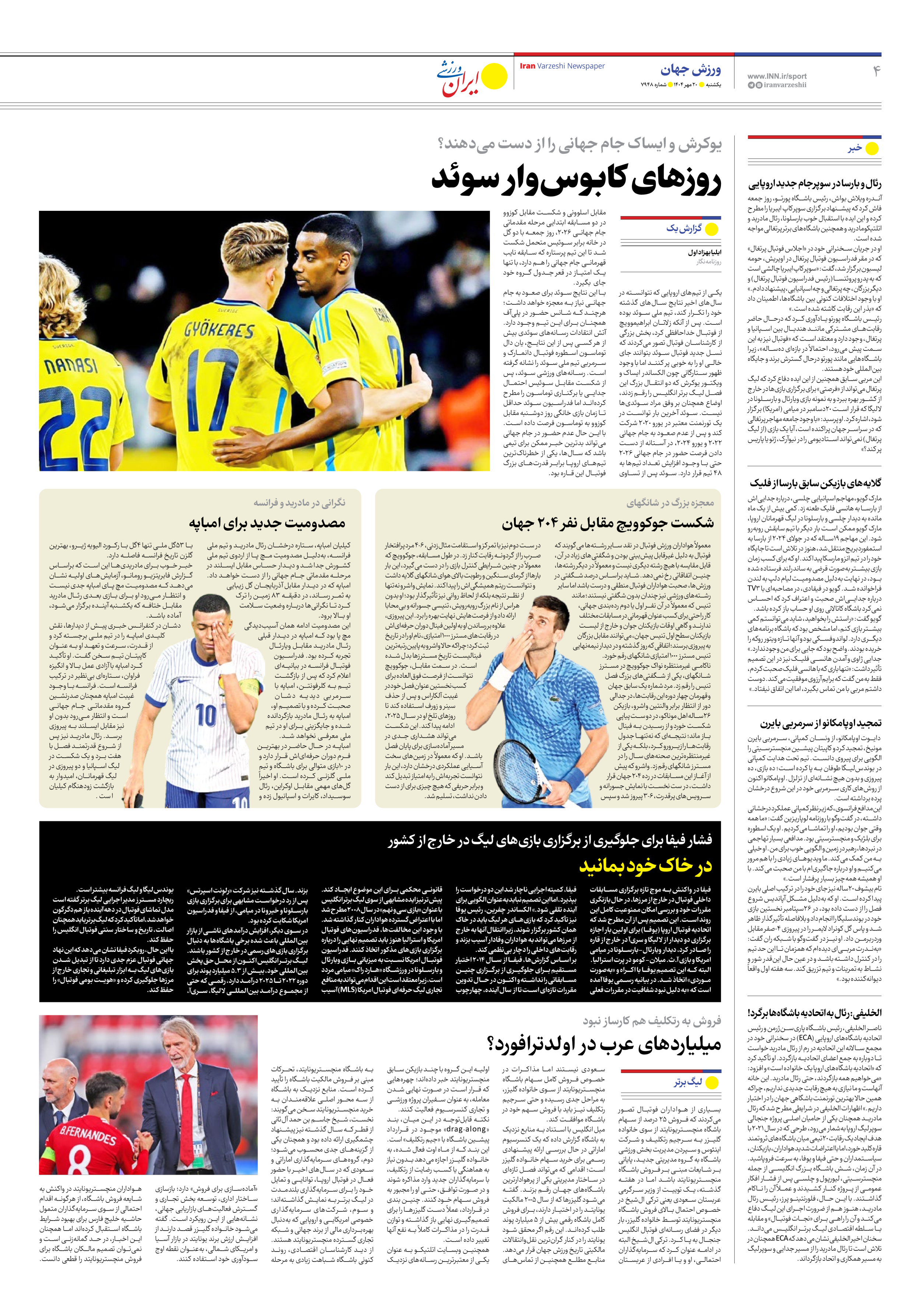 روزنامه ایران ورزشی - شماره هفت هزار و نهصد و چهل و هشت - ۲۰ مهر ۱۴۰۴ - صفحه ۴
