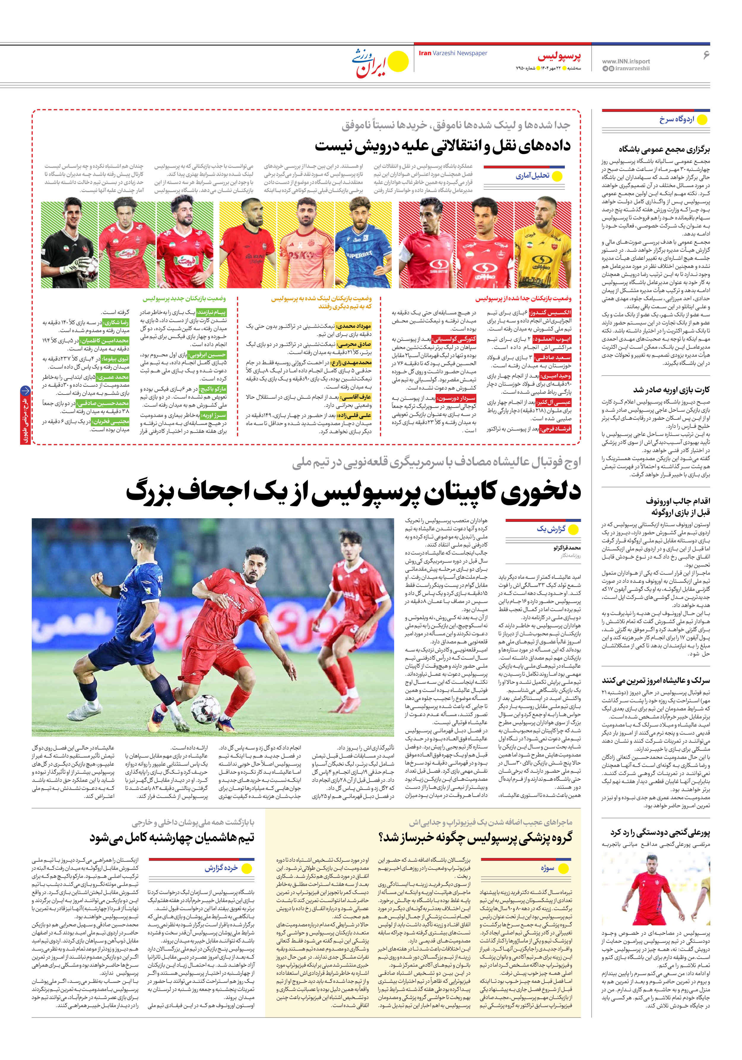 روزنامه ایران ورزشی - شماره هفت هزار و نهصد و پنجاه - ۲۲ مهر ۱۴۰۴ - صفحه ۶