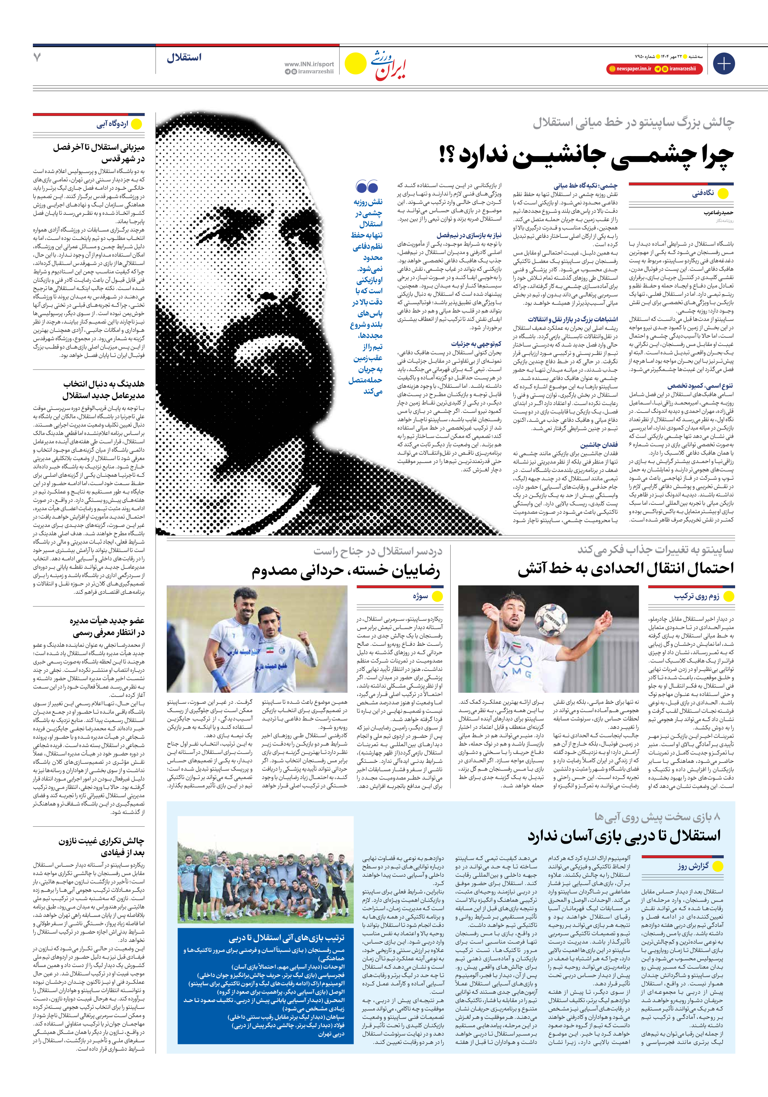 روزنامه ایران ورزشی - شماره هفت هزار و نهصد و پنجاه - ۲۲ مهر ۱۴۰۴ - صفحه ۷