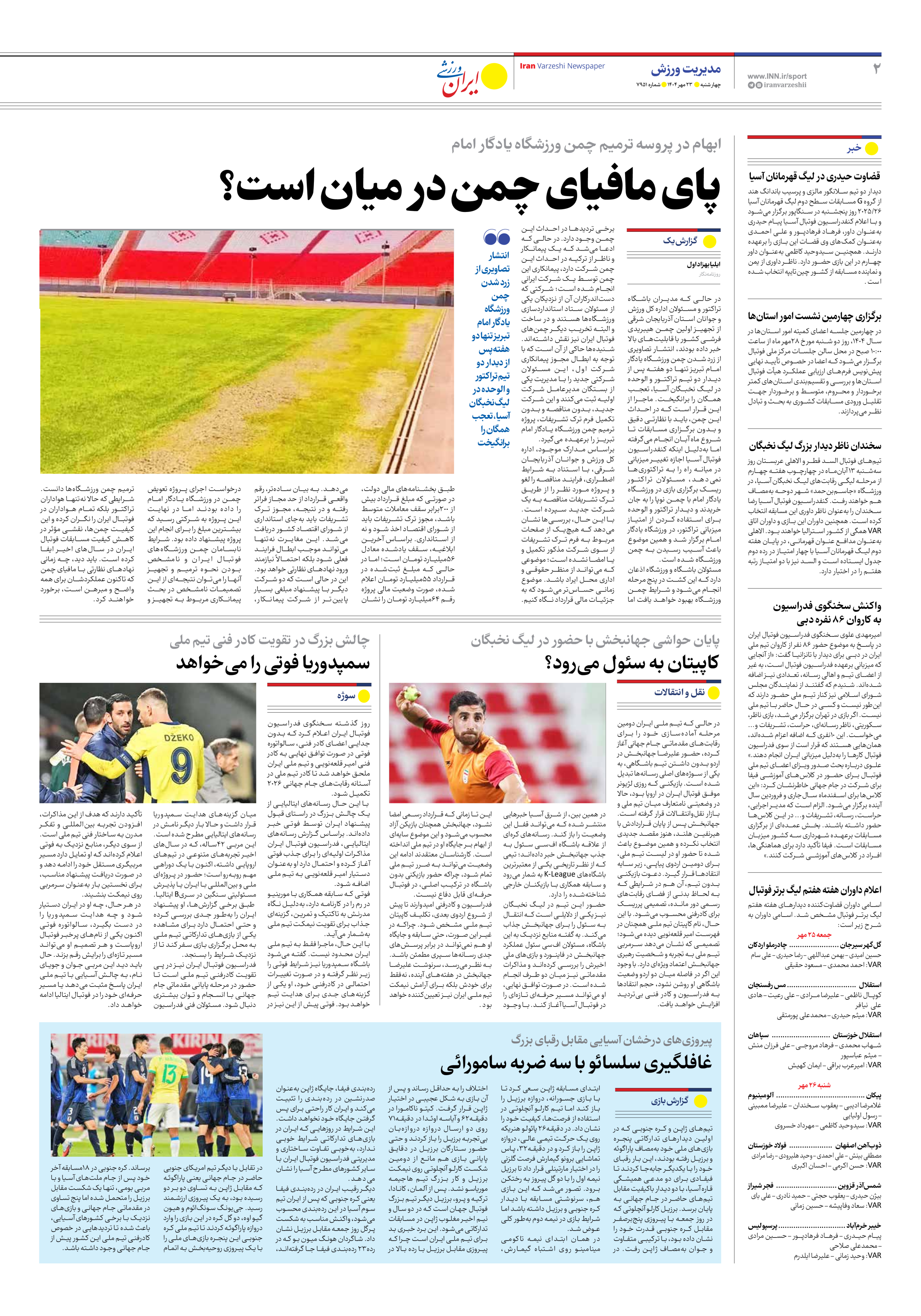 روزنامه ایران ورزشی - شماره هفت هزار و نهصد و پنجاه و یک - ۲۳ مهر ۱۴۰۴ - صفحه ۲